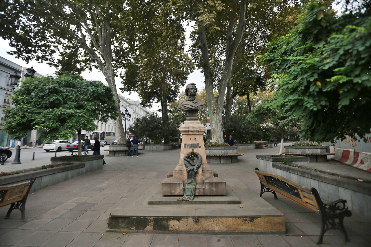 당신이 만약 트빌리시의 올드타운에 숙소를 구했다면, 당신은 도시 외곽으로 향하는 몇 가지 투어의 약속 장소로 매번 저 공원을 이용하게 될 것이다. 아니면 적어도 전철을 이용하기 위해서라도 여러 번 저 공원을 지나다니게 될 것이므로, 이곳의 이름 정도는 미리 알아두는 편이 좋겠다. 이곳은 ‘푸시킨 광장’이라고 불리는 곳이며, 지하도를 이용해 방금 건너온 도로는 ‘푸시킨 거리’라는 이름이 붙어있다.