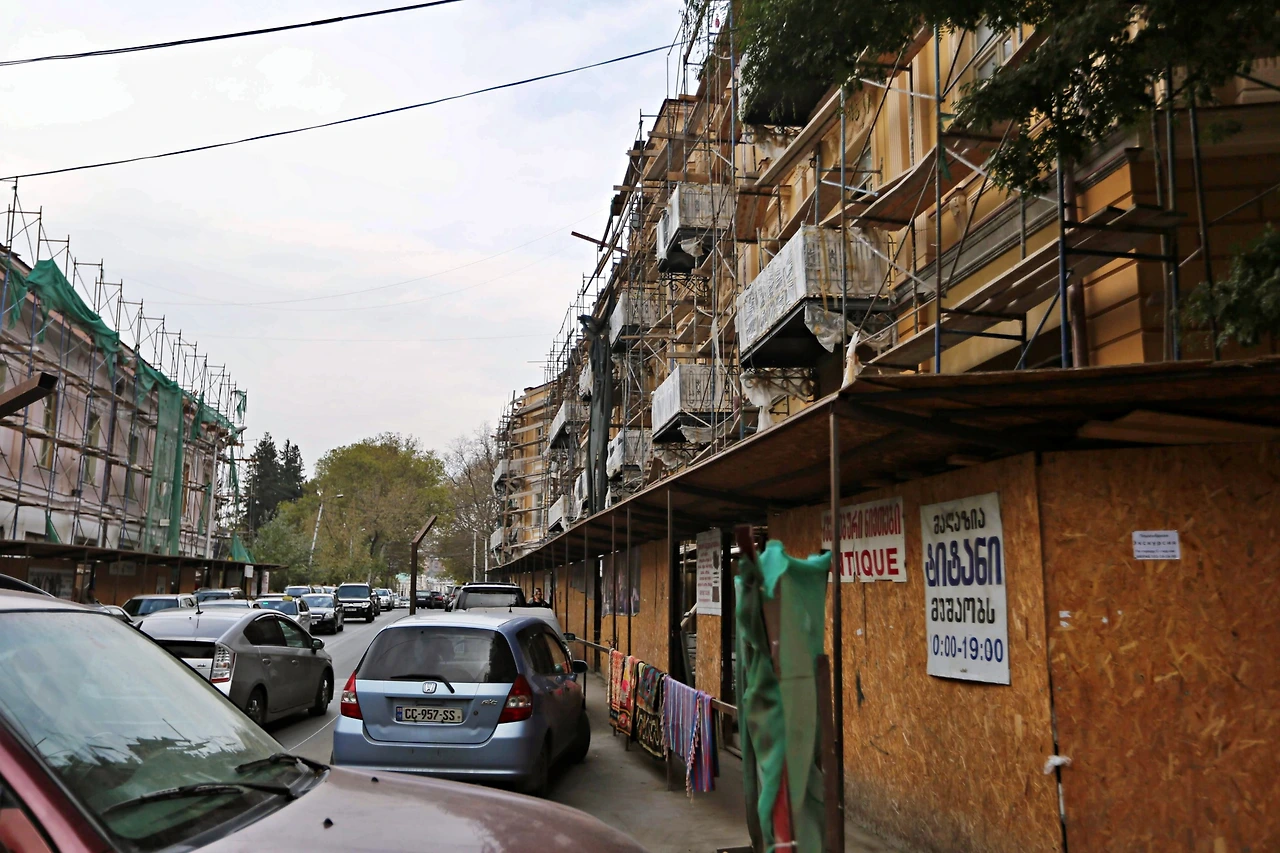 4월 9일 공원과 이어지는 기오르기 레오니제(Giorgi Leonidze) 공원을 빠져나온 우리의 걸음은 이렇게 계속해서 동쪽으로 이어진다. 양쪽으로 리모델링 공사에 들어간 건물들이 비계에 뒤덮여 있는 먼지투성이 구간을 빠져나오자, 갑자기 길 양옆 아래쪽으로 차도가 보인다. 조용히 걸어가던 주택가 도로가 한 걸음 지나는 사이에 갑자기 요란한 고가도로로 변한 것이다.