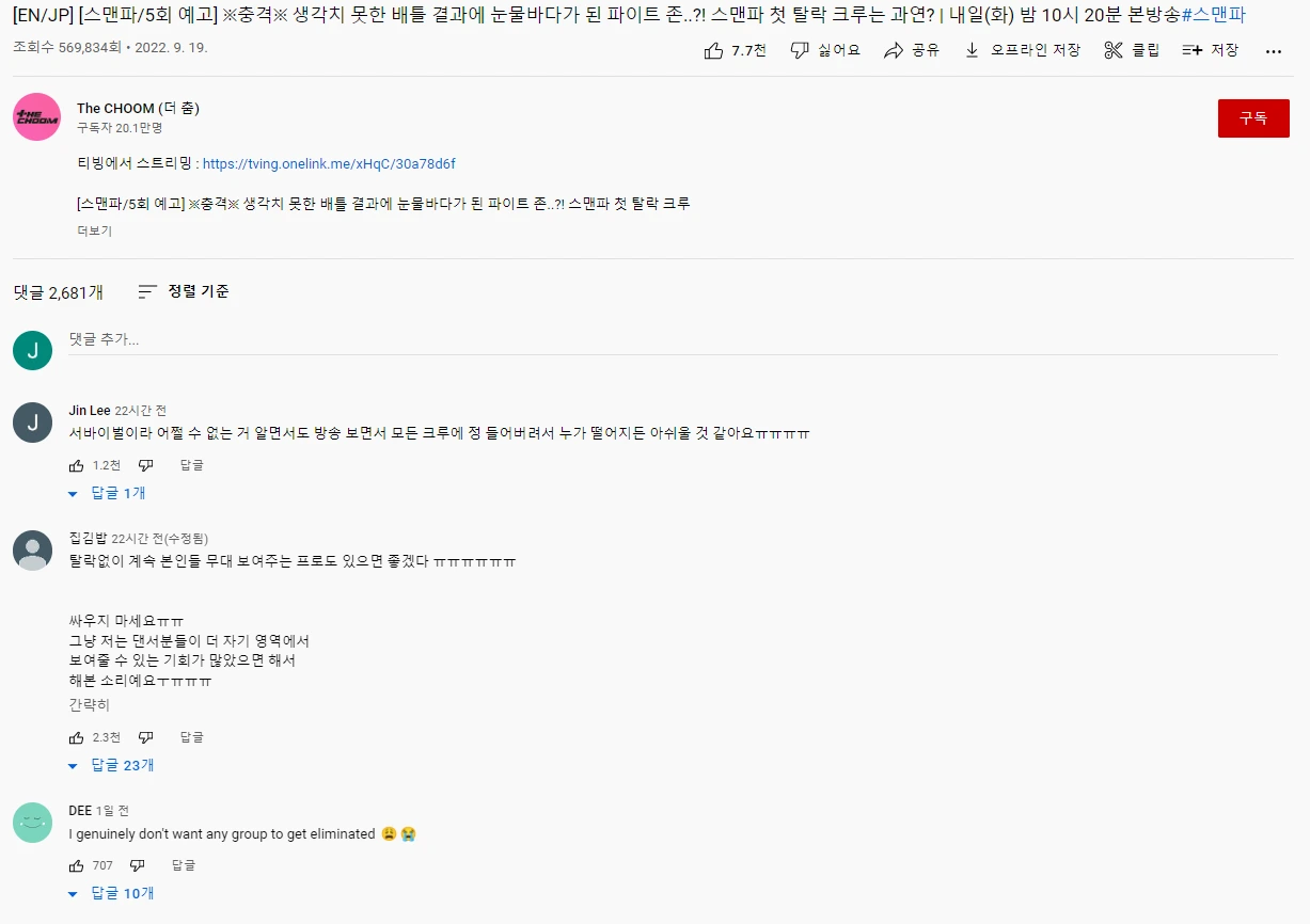 <스맨파>가 중반부로 넘어가면서 실망하는 시청자가 늘어나는 것 같다.