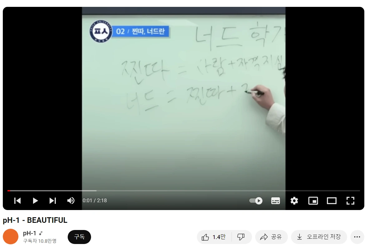뮤지션 pH-1이 '뷰티풀너드'를 디스하는 랩을 올린 것이다.