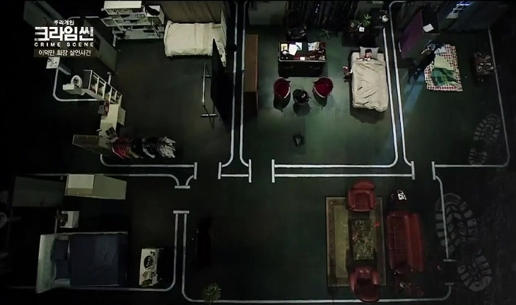 <크라임씬>은 과감한 압축을 택했다. 모든 배경을 세트장 안에 집어넣어 동선을 축소했다. 예를 들어, 실제로 범인의 집에서 사건 현장까지는 1시간 걸려도, 세트장 안에서는 10초면 갈 수 있는 식이다. 플레이어가 손 쉽게 모든 장소를 구석구석 탐험할 수 있다. 뭐 하나 단서를 찾으면 금세 퍼진다. 전개 속도도 빠르다. 이런 상황에서 제작진은 더 많은 시도를 할 수 있다. 흩어져 있는 촬영 장소 때문에 에너지를 분산하기보다는 좁은 세트장에서 추리를 위한 알리바이를 하나 더 짤 수 있다.