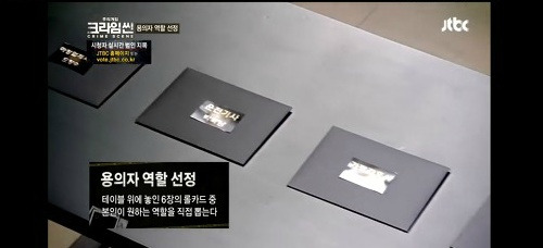 게임이라는 컨셉이 묘수다. 얼마나 절묘하냐면, 가상과 현실을 명확하게 구분함으로써 몰입을 이상하지 않게 만든다. 출연진은 또다른 자아를 만들어서 극에 몰입할 수 있다. 그걸 가능하게 하는 접속 장치는 ‘롤 카드 선택’이다. <크라임씬>은 매번 출연진이 롤 카드를 선택한다. 각자 연기를 준비하면서 범인을 맞추려고 노력한다. 진짜 자아는 잠깐 세트장 밖에 두고 새로운 캐릭터가 되어 일종의 보드게임을 하는 셈이다. 추리 게임을 위한 연기다. 장동민은 어색함 없이, 거리낌도 없이 장줌마가 되어 연기한다.