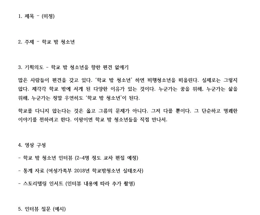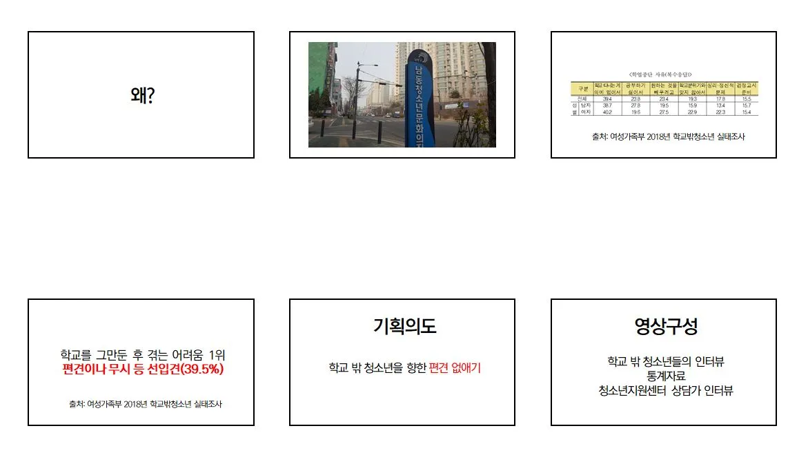 <학교 밖 청소년> 영상을 표현하기 위해 만든 자료들