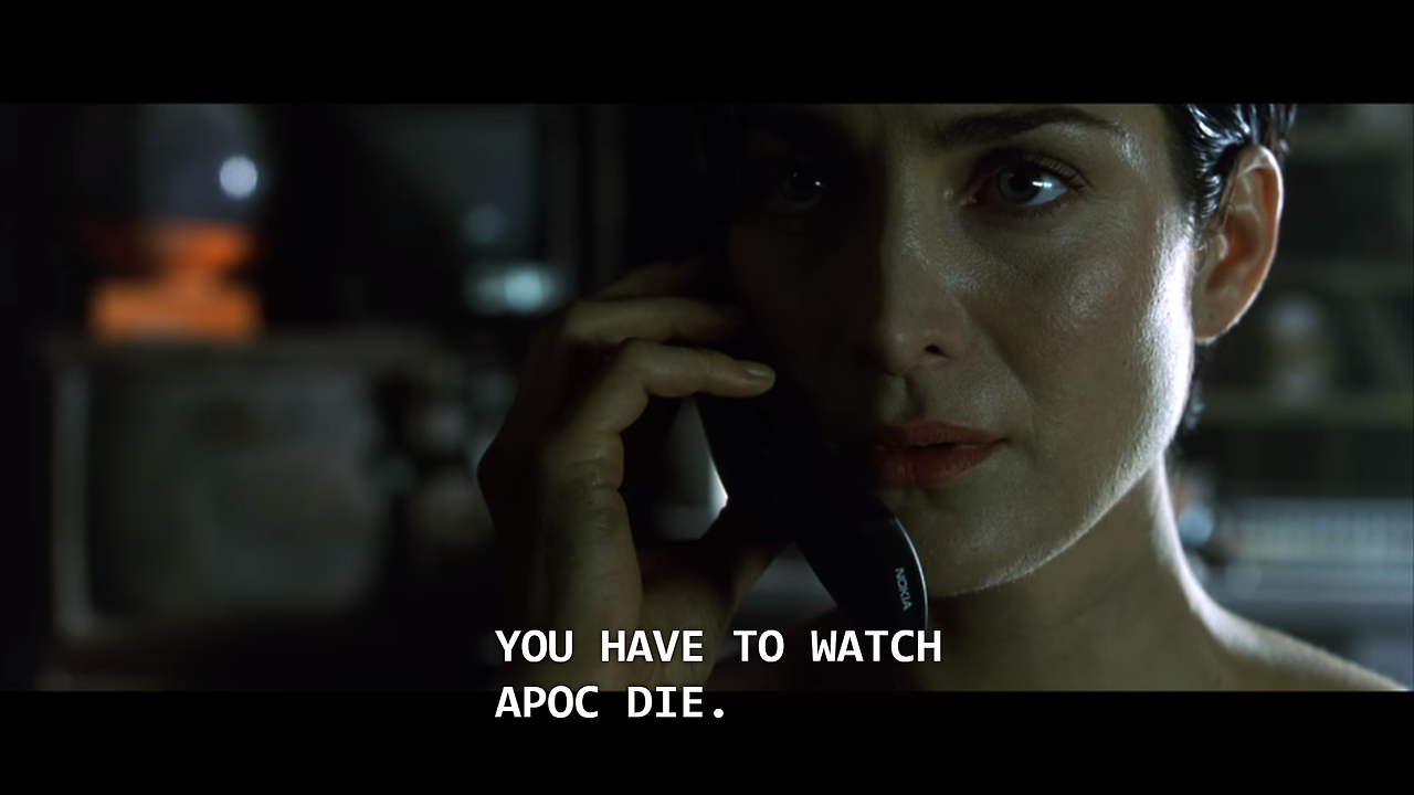 네오 동료로 나오는 '스위치'는 이때 사망한다. 매트릭스 저항 일행답게 그녀는 언제나 죽음을 염두에 두고 살아왔던 것 같다. 사이퍼가 회선 단절로 죽이려 들자, 트리니티에게 이런 식으로 죽는 건 싫다고 반복해 말하며 안타깝게 사망한다. 마지막 대사는 "Not like this".