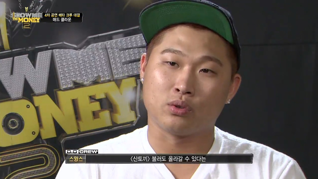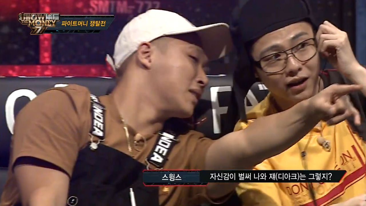 스윙스는 소파에 앉아 그 모습을 바라봤다. 둘은 출신이 같다. <쇼미2> 동기이자 개국공신이다. 하지만 세상 일이 다 그런 거 아니겠는가. 한 명은 심사했고, 한 명은 지원했다.
