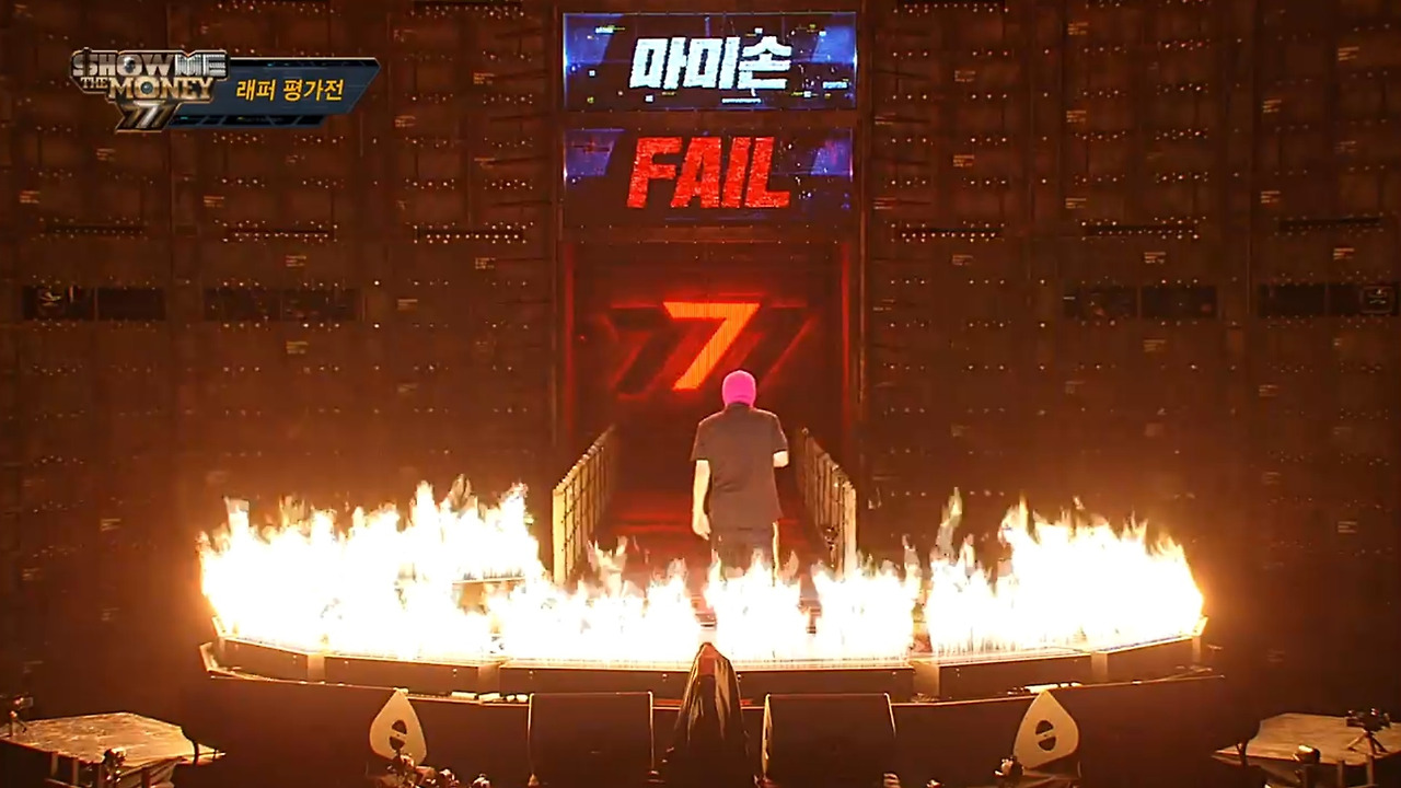 도박이었다. 탈락하면 이제껏 <쇼미> 안에서 쌓아온 권위를 다 잃는 것이기 때문에. 결국 불구덩이에서 떨어졌다. 그가 가사를 절은 게 일부러 그런 건지, 정말 실수였는지는 알 수 없다. 뭐, 어쨌든. 그는 나왔고, 떨어졌다.