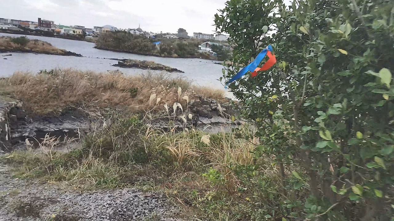 이제 대강의 길이 보인다. 이 정도 속도로 걸으면 점심은 이쯤에서 먹겠구나, 근처 음식점도 한번 검색해보고... 다음날 묵을 게스트하우스도 전날 밤 예약 완료. 슬슬 제주도 풍경 패턴이 익숙해지는 단계. 갈림길을 만나면 다음 리본이 왼쪽에 있을지 오른쪽에 있을지 맞춰본다. 이번엔 오른쪽이디... 좀 걸으면 리본을 발견! 묘한 쾌감도 있다. 어떻게 맞추냐고? 논리적으로 설명할 순 없지만 ‘확실히’ 안다. ‘올레길스러운’ 길이 있기 때문이다. 혹시나 길을 잃어도 문제없다. 다시 ‘올레길스러운’ 길로 찾아가면 된다. 핸드폰 없이도 가능하다.