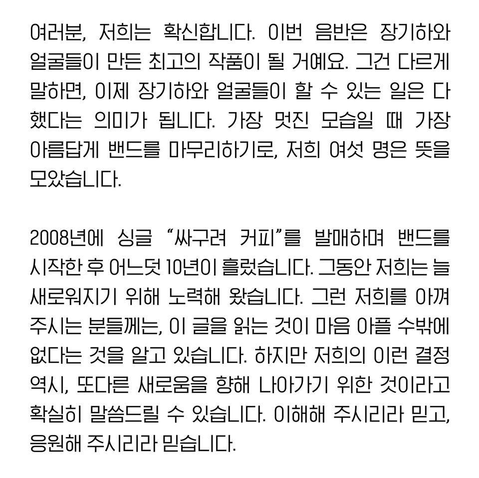 친구가 말했던 초심은 뭐였을까. 취준생의 절박함? 아니면 꿈을 향한 다짐? 어쨌든 친구의 말에 나는 바로 장기하와 얼굴들(이하 ‘장얼’)을 떠올렸다. 정확히 말하면 장얼의 해체 선언을.