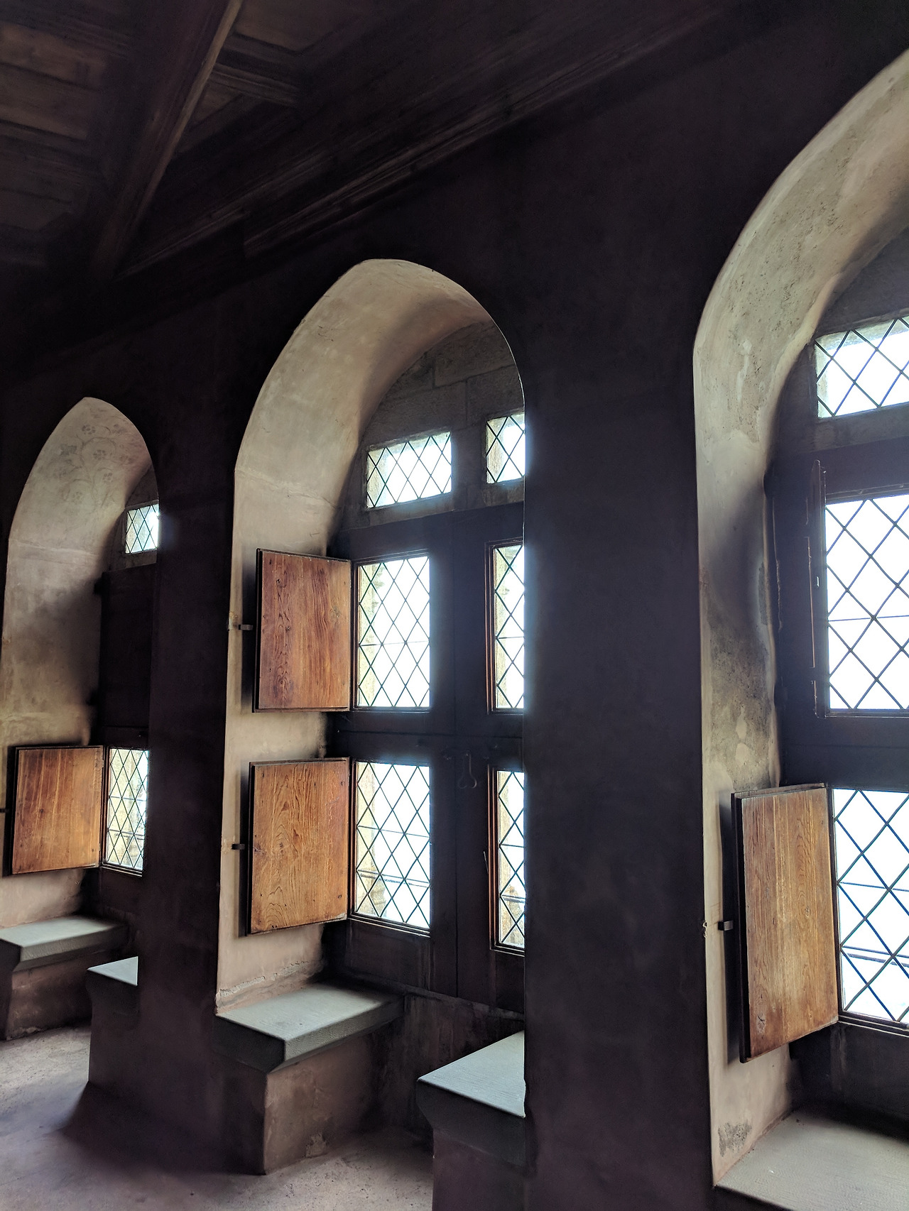 중간 중간 중세 고성의 창들이 신선한 바람을 불러 들인다.