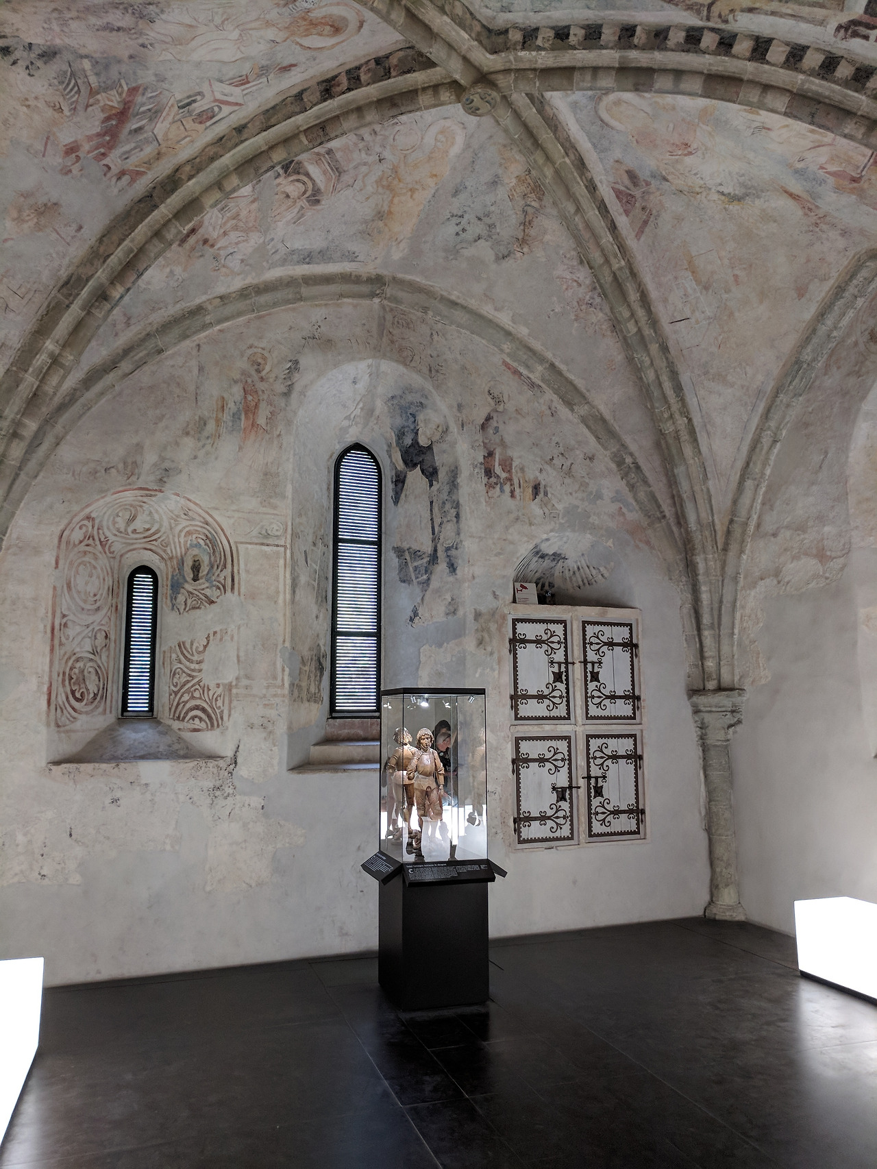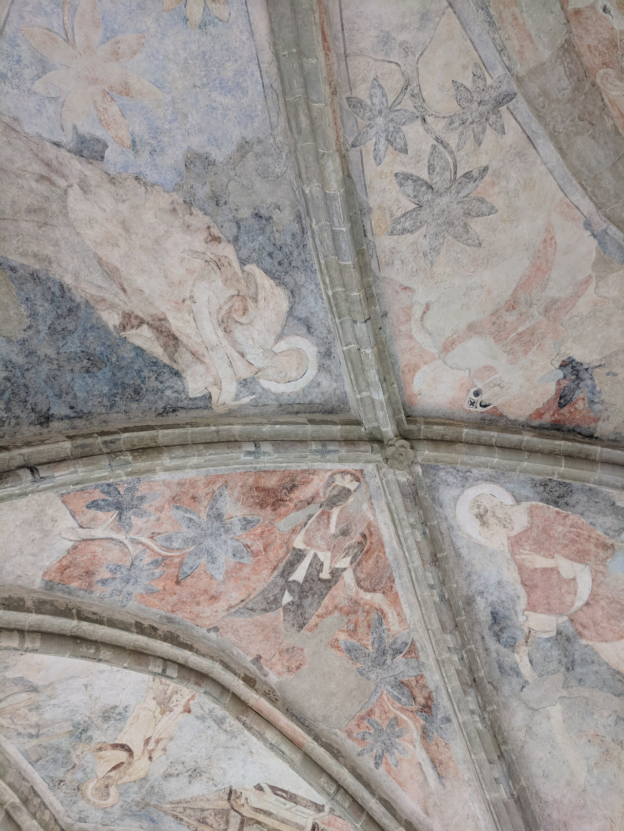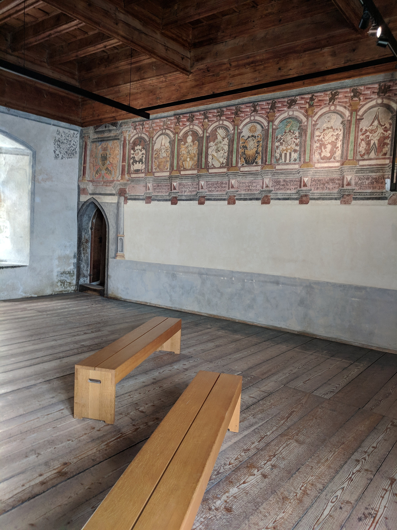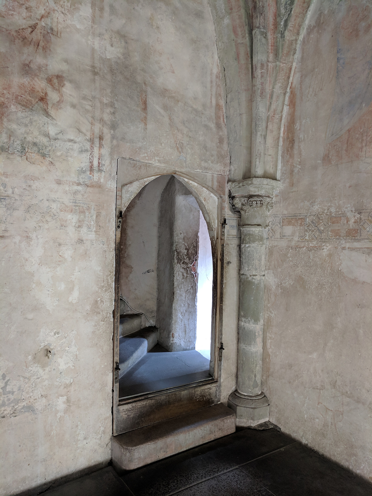 이제 드디어 예배당. 잠을 자고, 밥을 먹는 공간 따위와 비교가 되지 않는 우아함이 묻어 나온다. 세월의 흔적으로 희미해지긴 했지만, 딱 봐도 예배당이다.