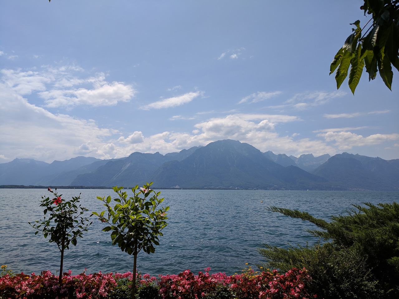 약 1시간 안걸려서 몽트뢰에 도착. 몽트뢰는 늘 미세먼지 한 점 없는 깨끗함과 철마다 피는 다양한 꽃들로 눈이 정화되는 곳이다.