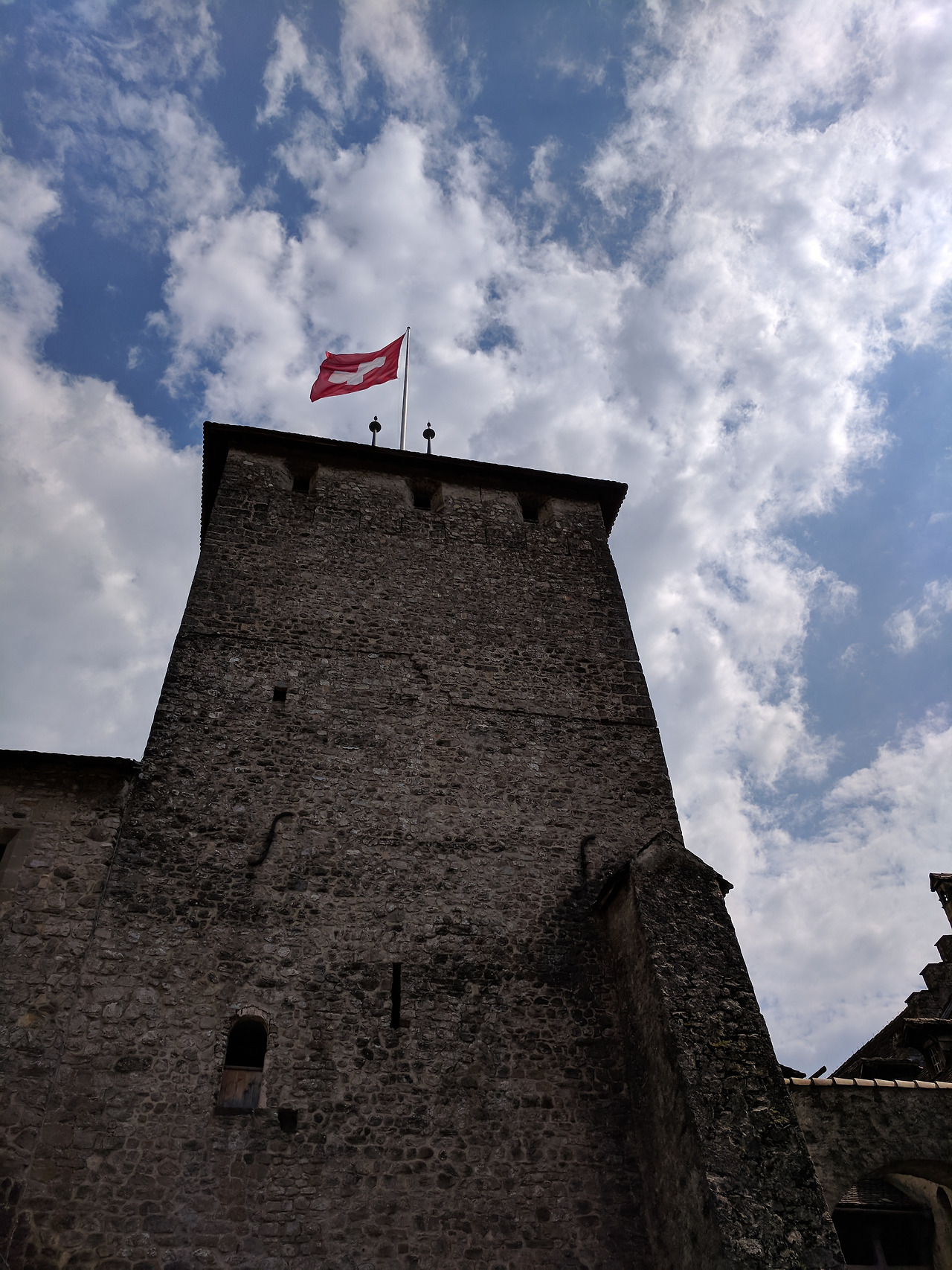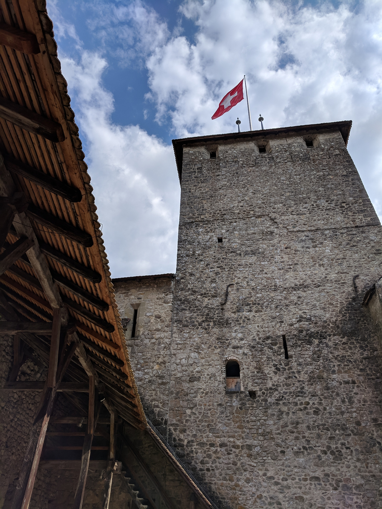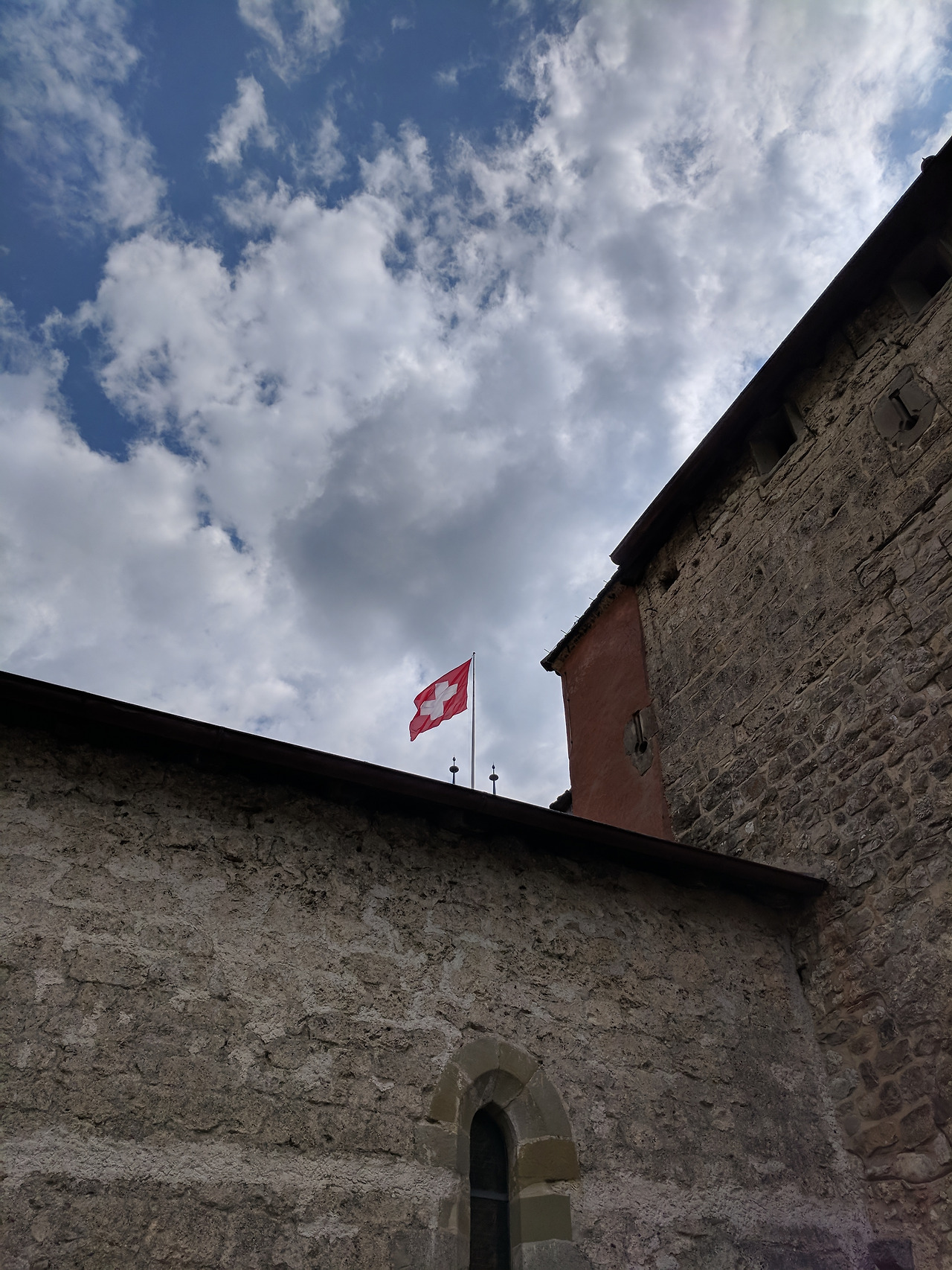세 번째 안뜰. 여기선 파란 하늘에 날리는 스위스 국기가 유독 더 눈에 띈다. 심플해서 마음에 드는 스위스 국기.