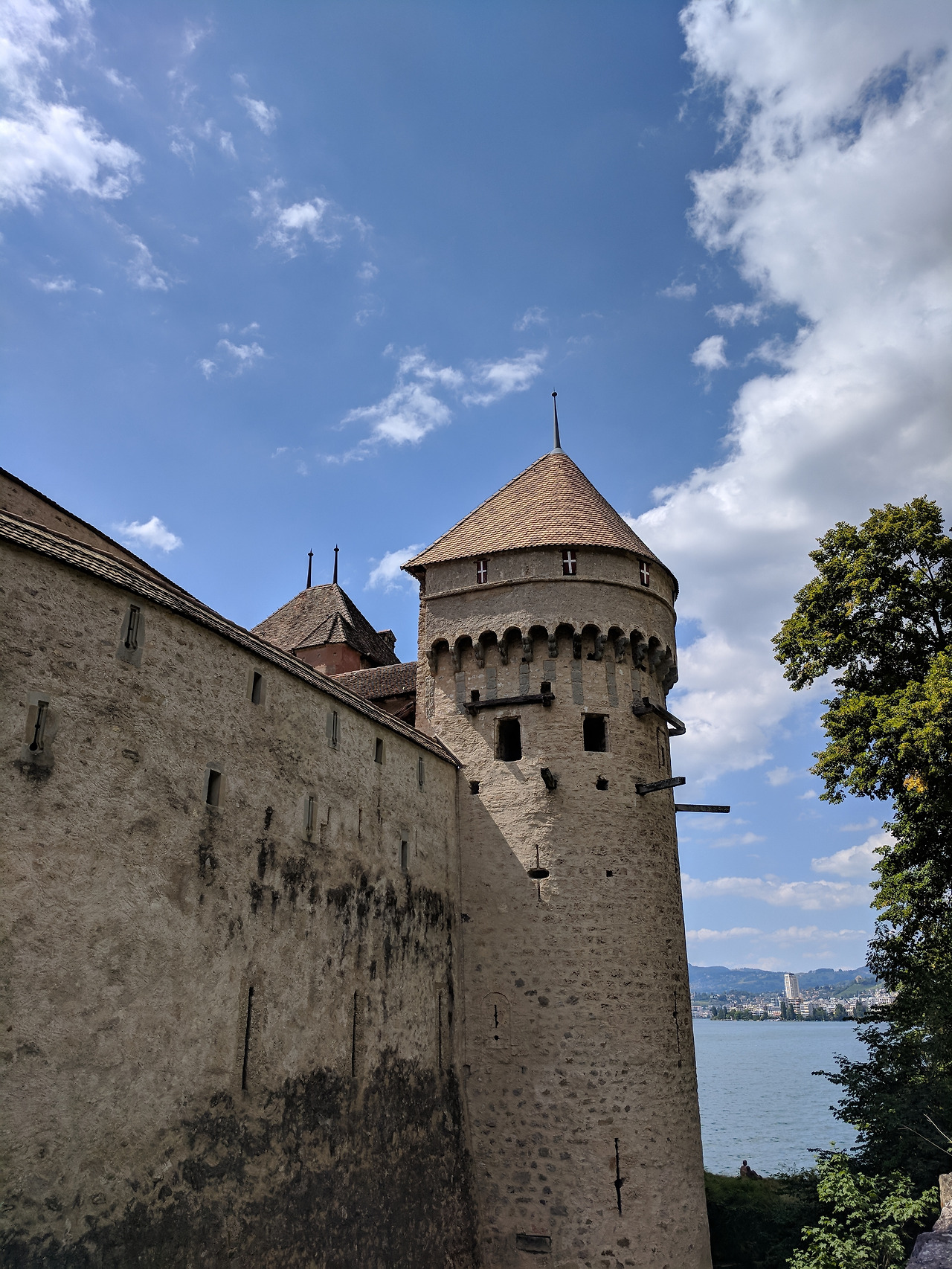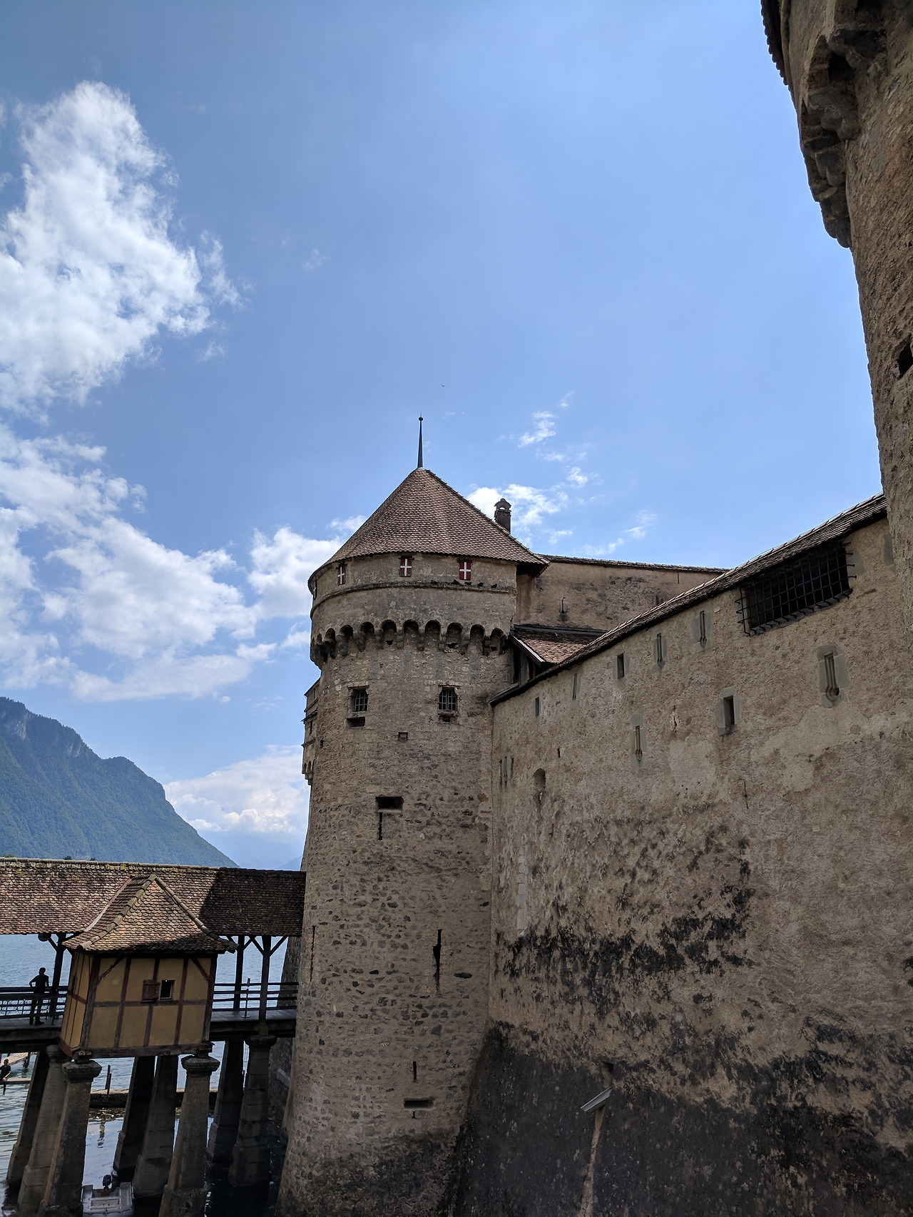 혹자는 레만호에 떠 있다고 표현하는 시용성 (Château de Chillon). 바위섬 위에 세워져, 멀리서 보면 호수 위에 둥둥 떠 있는 것 처럼 보일 만도 하다.