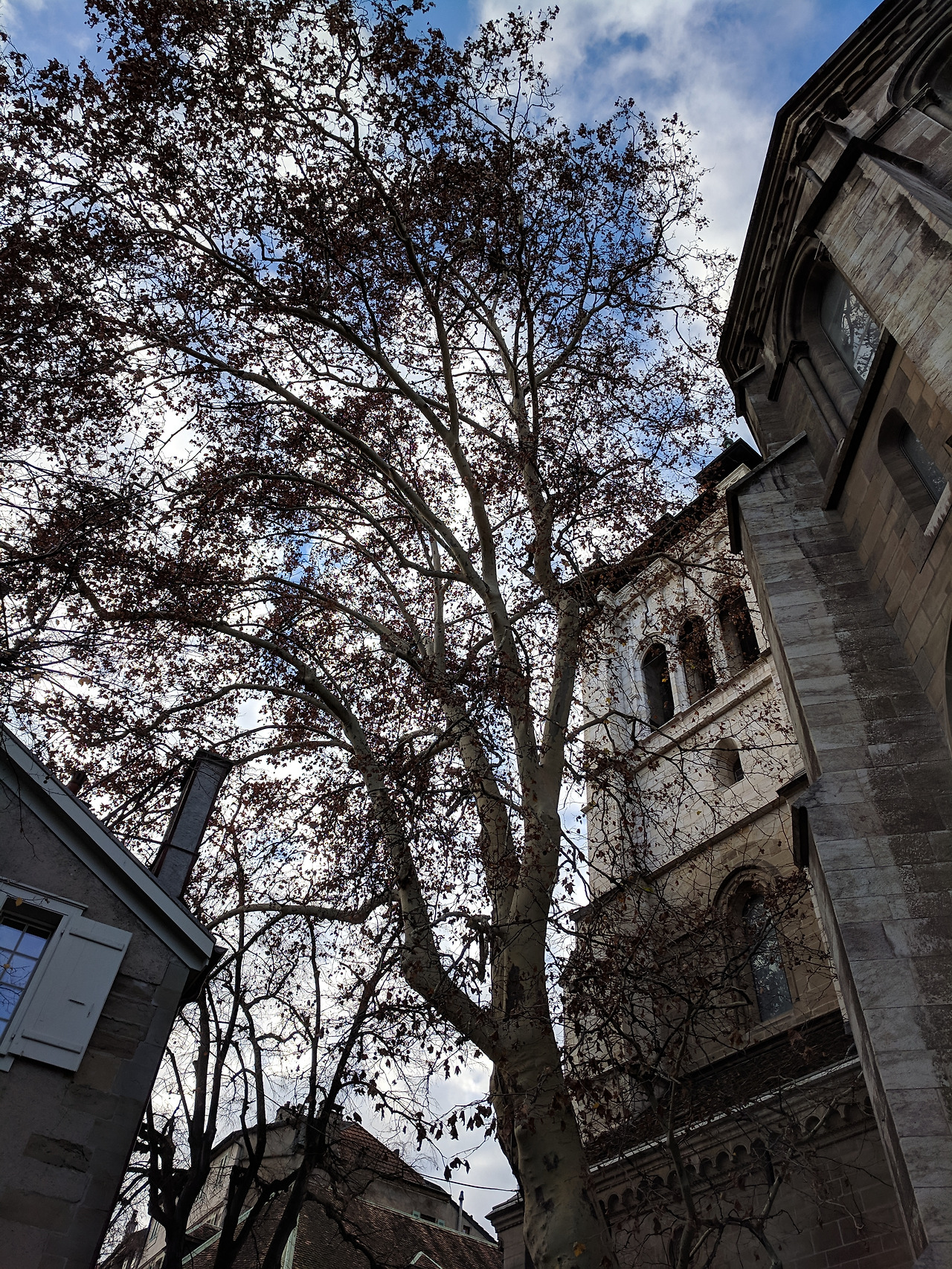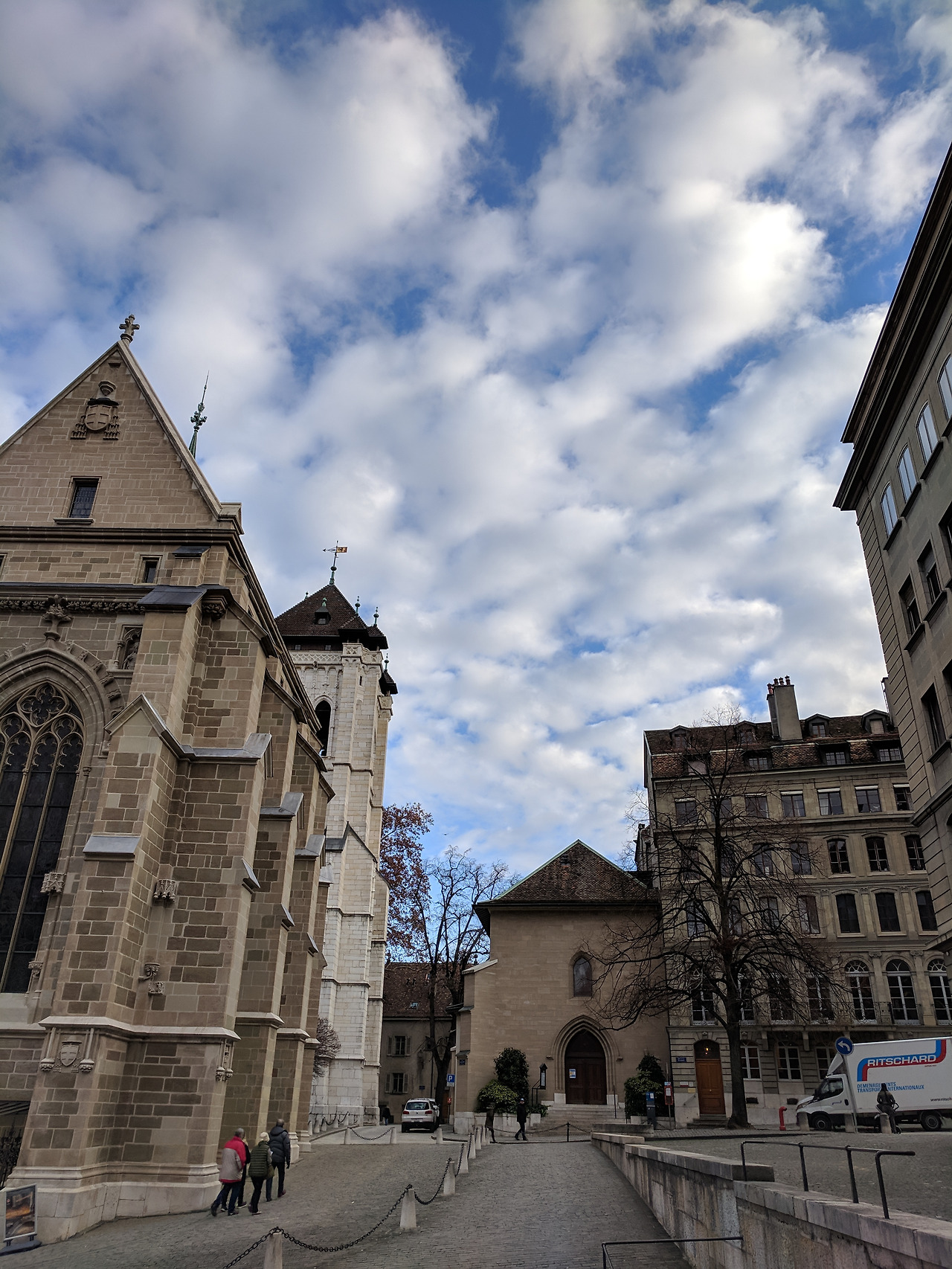 칼뱅의 종교개혁과 관련된 도시라는 사전 지식이 전혀 없더라도, 삐에르 성당(Cathédrale Saint-Pierre Genève)은 제네바 올드 타운에서 지나치기 힘든 곳이다. 중세 흔적을 간직한 유럽의 대부분의 도시가 그러하듯, 올드 타운의 터주 대감처럼 우뚝 솓아 있는 삐에르 성당.