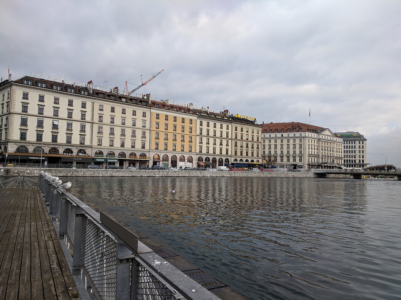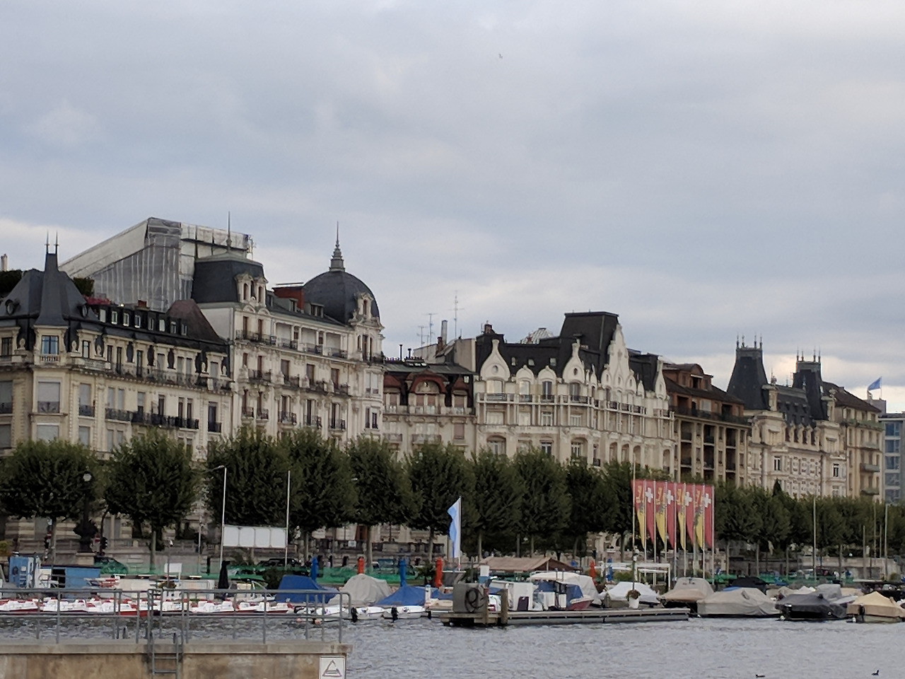 제네바는 사실 레만 호수로 둘러싸여 있어 호수 도시로도 유명한 곳이다. 멀리 몽블랑이 보이는 레만 호수가 산책도 제법 운치 있는데, 그 크기가 거의 서울의 면적과도 맞먹을 정도라고 하니 처음엔 바다처럼 보였던 것이 착시가 아니였던 것. 호수 주변으로 마치 해변에 들어선 건물들 처럼 다양한 건물들이 들어서 있고, 고급 호텔과 부띠끄들이 들어서 있어 시원한 뷰를 자랑한다.