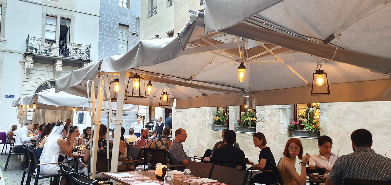 멀지 않은 곳에 Hôtel Les Armures가 위치해 있고, 이 호텔에서 운영하는 듯한 Restaurant Les Armures은 퀄리티 있는 샤귀터리, 퐁듀 등 제네바 특선 요리 (프랑스 문화권이어서 프랑스 요리와 아주 유사하다)를 맛보기에 안성맞춤인 곳이다. 스위스 안에서만 다 소비되기 때문에 수출을 하지 않는다는 스위스 레드 와인과 함께 하면 금상첨화다. 제네바 올드 타운에서 스위스 전통 요리 들을 제대로 즐기고 싶다면 Restaurant Les Armures를 강추한다.
