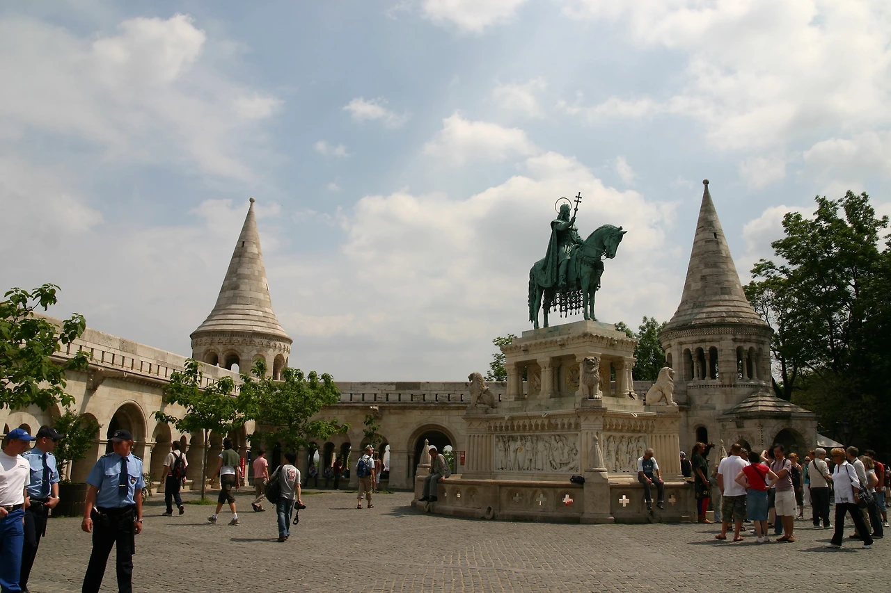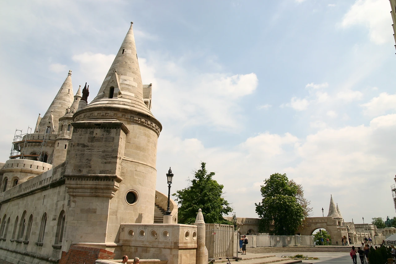 마차시 성당 주변으로는 네오 로마네스크 양식의 탑 7개로 구성된 '어부의 요새'라는 또 다른 화려한 건축물이 자리 잡고 있는데, 유럽 어느 도시에서도 느껴보지 못한 독특한 풍경에 연신 사진을 찍게 되는 스팟이다. 어부의 요새를 구성하는 7개의 꼬깔 모양의 탑은 헝가리를 세운 7명의 마자르족 영웅을 상징하는 것이라고. 조금 과장하면 중세 놀이공원 같기도 한 독특한 공간에서 미로에서 숨바꼭질하듯 산책하는 재미를 선사하는 곳이다. 사진에서도 볼 수 있듯이, 요새 한 가운데, 또 다른 영웅의 동상이 위엄있는 모습으로 서 있는데, 바로 스테판 동상으로, 십자가를 손에 들고 있어 더 위엄 있어 보였다. 마치 체스판의 말 들 처럼 여기저기 배치되어 있는 꼬깔 모양의 탑과 동상이 참 인상적인 공간이다.