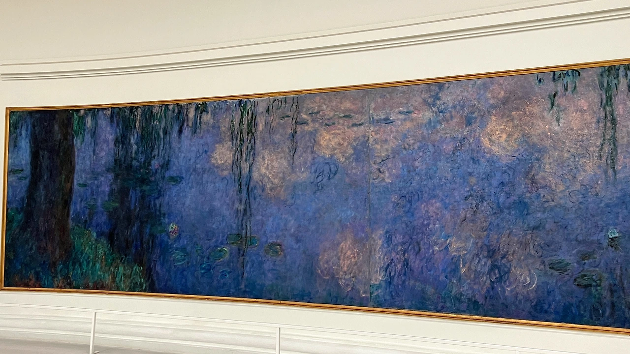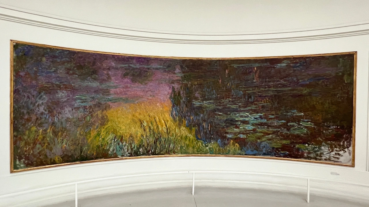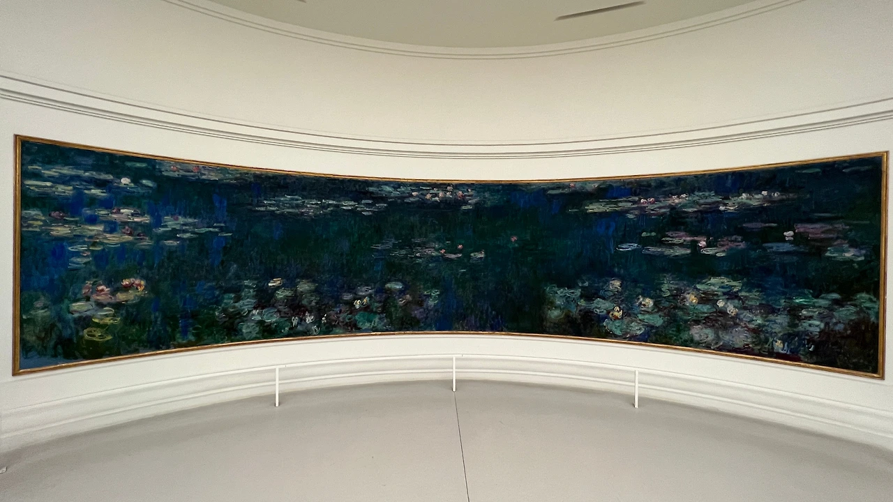 모네의 수련 연작이 전시되어 있는 전시실은 타원형의 방에 길게 걸린 모네의 수련 연작들을 타원형 소파에 앉아 감상하는 형태이다. 물론 서서 감상해도 되지만 그 길이가 제법 길기 때문에 자세히 화가의 붓질 흔적을 관찰하는게 아니라면 소파가 놓인 곳에 앉아 차분히 감상하는 것이 그림을 한 눈에 넣을 수 있는 가장 좋은 방법이다. 아침, 해질 저녁, 계절에 따라 다르게 그린 수련 연작들을 찬찬히 바라보고 있자면, 왜 그가 인상파 인지 감을 잡게 된다.