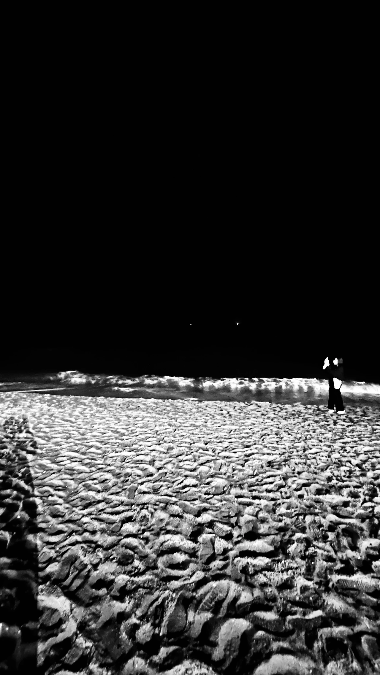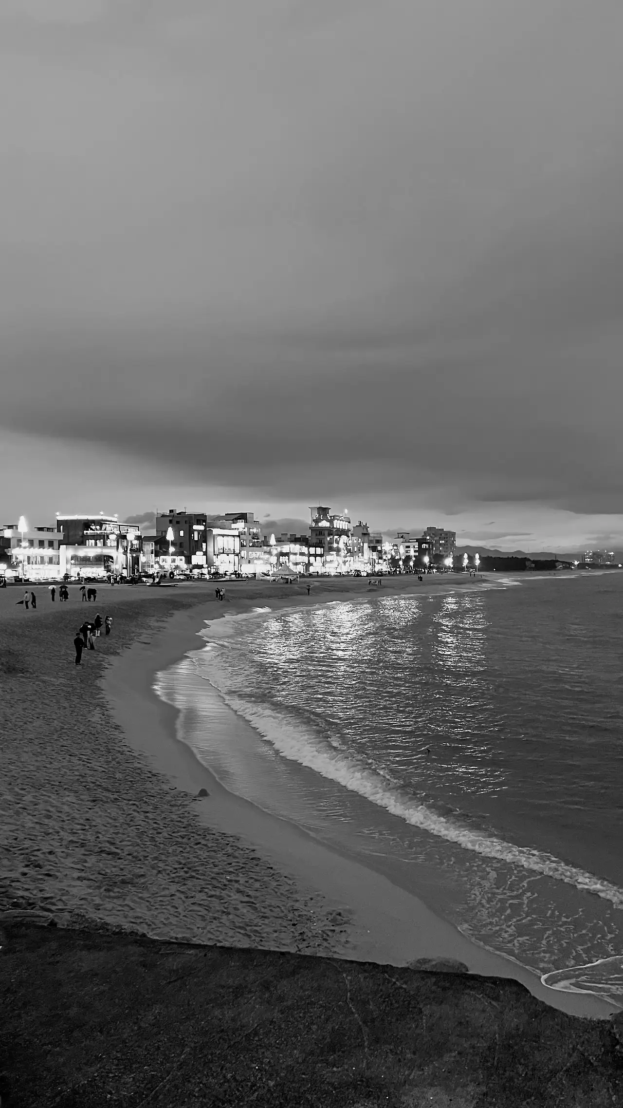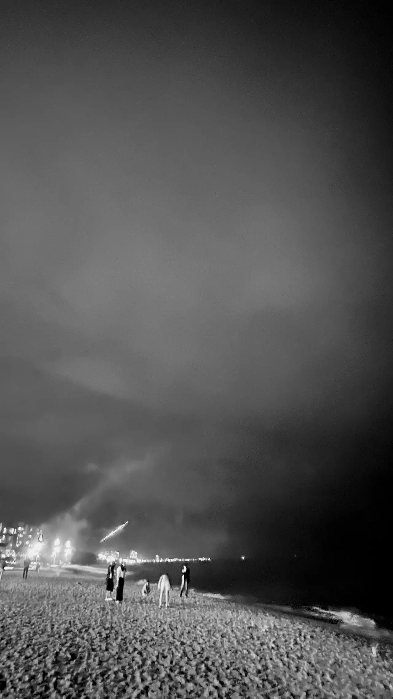 해변 여기저기서 소박한 불꽃놀이를 즐기는 사람들.
