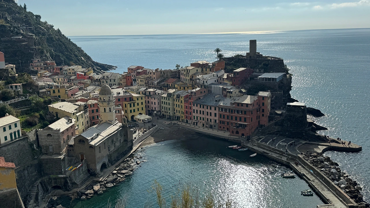 우주여행 하다가 다시 우주선 안으로 들어가듯이 (실로 그런 현실 아닌 세상에서 현실로 들어가는 느낌이었다) 이제 베르나차 마을로 쏙 빨려들어가는 가 싶더니, 다시 빼꼼히 나타나는 베르나차 마을의 전경. 이내 다시 없을 베르나차 트레킹인양 카메라 렌즈를 여기저기 360도로 들이댄다. 저기 멀리 솟아 있는 성채에도 사람들의 실루엣이 보인다. 저 성에도 꼭 올라가봐야지 하며 작은 다짐을 되뇌인다.
