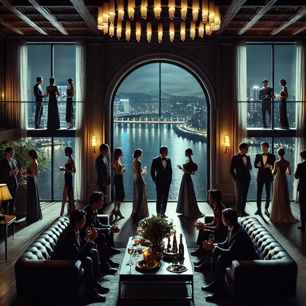 조용히 돔페리뇽이 테이블에 깔리며 손님들이 들이닥치기 시작한다.