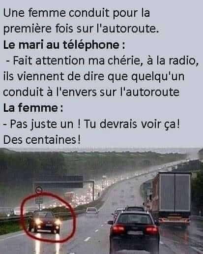 남편(전화로): 여보 조심해요, 라디오에서 그러는데, 어떤 사람이 고속도로에서 역주행을 한대.
