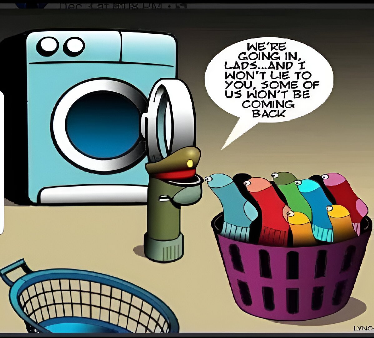 양말대장: 우리 이제 (세탁기안으로) 들어갈거야.