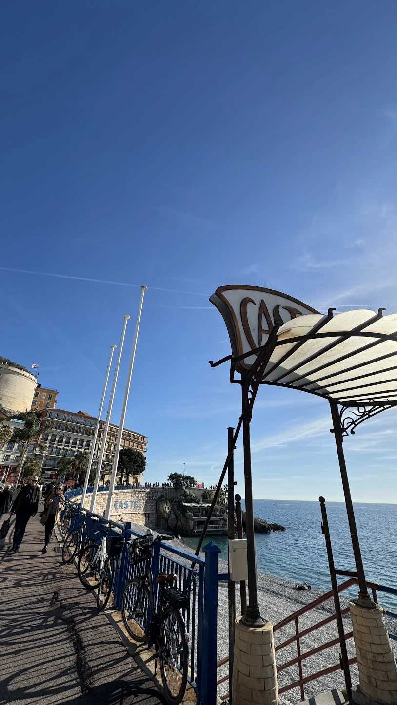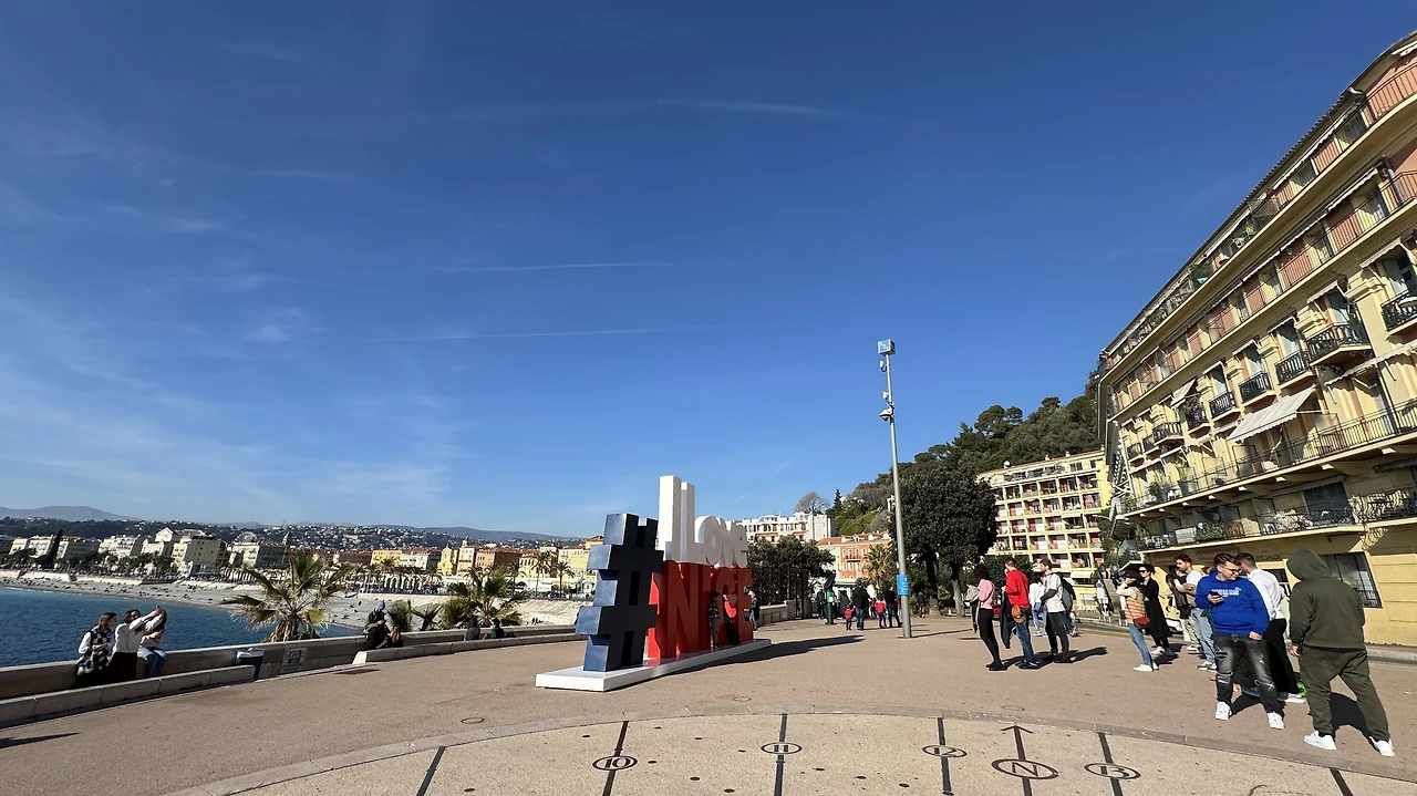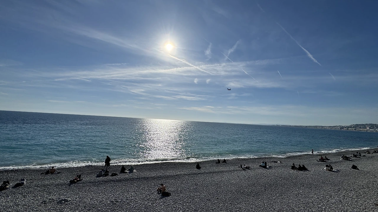 니스의 영국인의 산책로 (프롬나드 데 장글레(Promenade des Anglais))의 긴 해변입니다. 겨울에도 15도 이상인 날들이 있어 해변에서 소소한 일광욕이 가능합니다