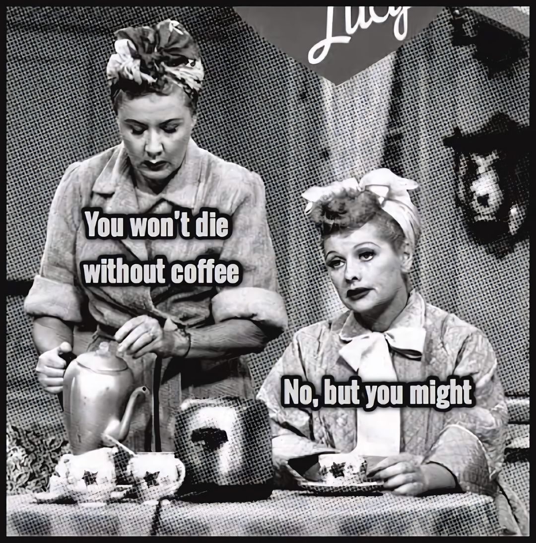 왼쪽 여자: 커피 안 마신다고 죽진 않아.