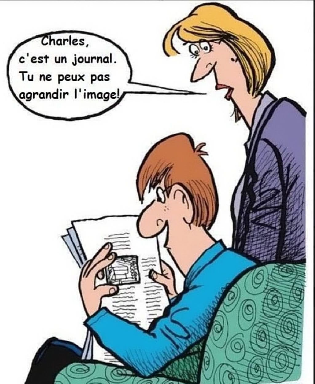 여자: 찰스 그건 신문이야, 이미지를 확대할 수 없어