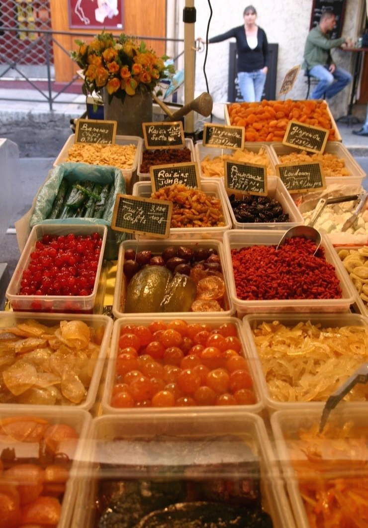 늘 계절 과일과 절인 올리브, 말린 햄, 올리브유, 각종 프랑스남부 양념들, 꽃, 각종 치즈, 해산물 등을 만날 수 있는 앙티브 Marché Provençal ...올드타운 입구에 위치해서 올드타운 산책을 갈 때면 늘 지나가게 되는 곳...각종 원색들이 활기참과 함께 묻어나는 Marché Provençal ...