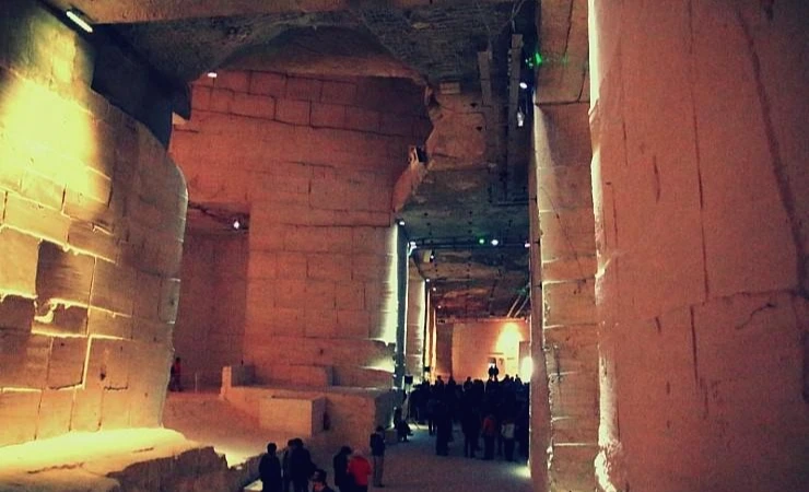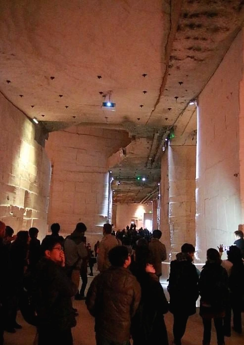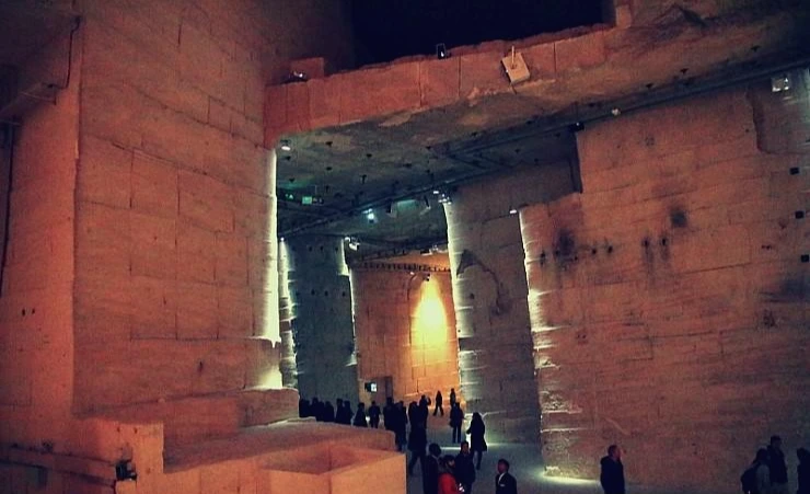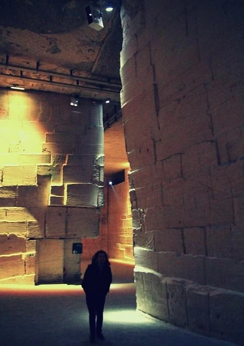 소박한 입구와는 다르게 들어서자 마자 볼륨감의 압박. 거대한 지하 공간에 들어온 듯 채석장의 흔적들이 모든 벽면에 가득한 역사의 현장을 마주하게 된다.