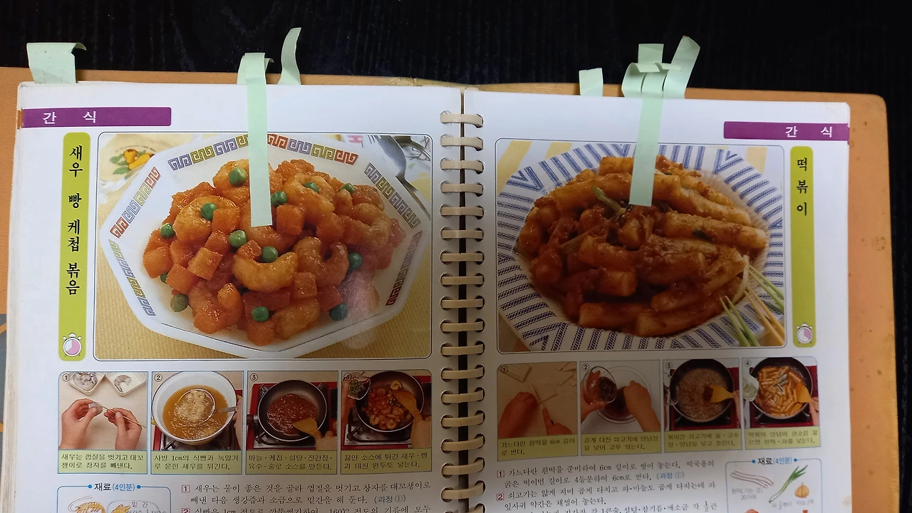이 요리책에는 지금도 아이들이 먹고 싶은 요리, 만들어보고 싶은 요리 등... 그 요리 페이지에 스티커가 붙어 있어요...ㅎㅎ