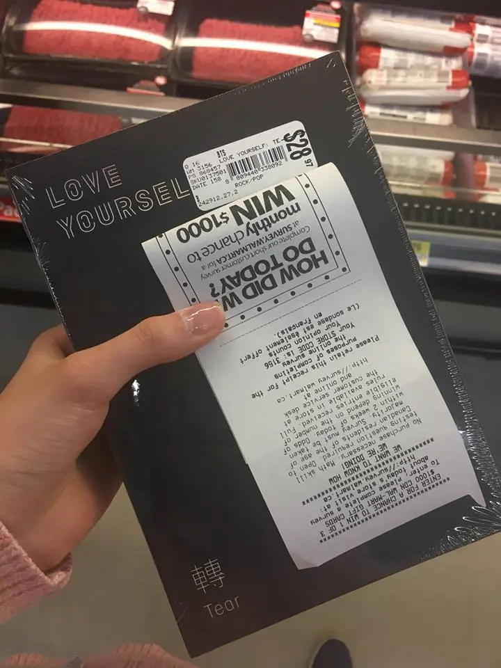 결국 배 씨는 판매원이 집어 주는 아무거나 한 장을 사들고 돌아왔습니다. 그렇게 윙즈(wings) 앨범을 구해 온 지 얼마 되지 않아서 러브 유어셀프 Love Yourself-承-Her가 발매되었습니다. 공식 판매처인 월마트에서 솔드 아웃되는 바람에 배 씨의 딸은 배 씨의 신용 카드를 이용해서 아마존에서 앨범을 구입합니다. 역시 4종류로 발매되었는데 심지어 기-승-전-결 4번의 연작으로 발매된다고 했습니다. 4장 x 4번의 매출 규모가 어렵지 않게 예상됩니다.(물론 실제 앨범은 승-전-결 세 번에 걸쳐 발매됩니다.) 이어서 캐나다에선 구하기 힘든 앨범 두 장은 한국의 큰 이모에게 부탁해서 구입했습니다. 배 씨의 딸은 큰 이모에게 고마워했지만 배송료를 포함한 이 모든 비용을 배 씨는 처형에게 지불했습니다.