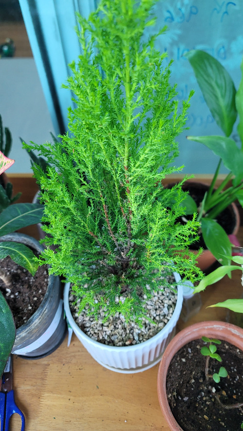 나는 조금 의아했는데 왜냐하면 내가 아는 율마는 변하기 시작하기가 무섭게 나무 전체가 완전하게 말라버리기 때문이다. 이렇게 절반 정도만 남겨두고 살아나는 경우는 드물다. 마지막 기회다 싶어 변한 부분을 부리나케 솎아내 준다. 다소 빈약해지긴 했지만 여전히 살아있는 율마다. 다시 보초를 서는데 이번엔 텀을 조금 더 길게 보며 물을 주기로 정했다.