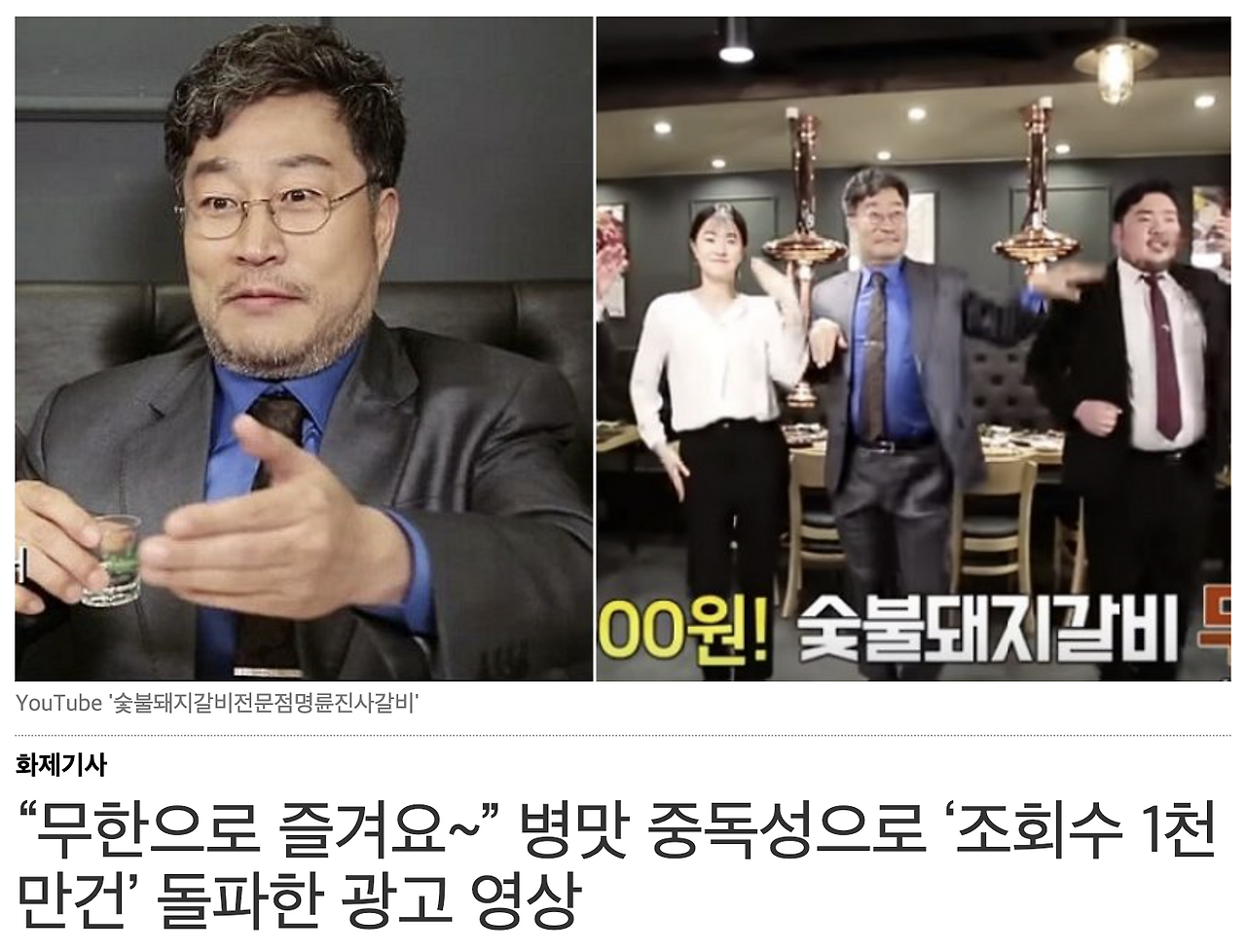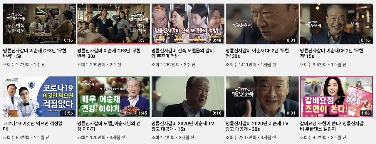 2018년 6월에 처음 게시된 명륜진사갈비의 회사 편 TV광고는 2019년 9월을 기점으로 유튜브 조회수가 1천만 건을 돌파했다. 무려 1년 3개월이 소요됐다. 비의 '깡' 뮤직 비디오가 1천만이 넘기까지 2년이 넘었던 것과 비교하면 놀라운 조회수다.