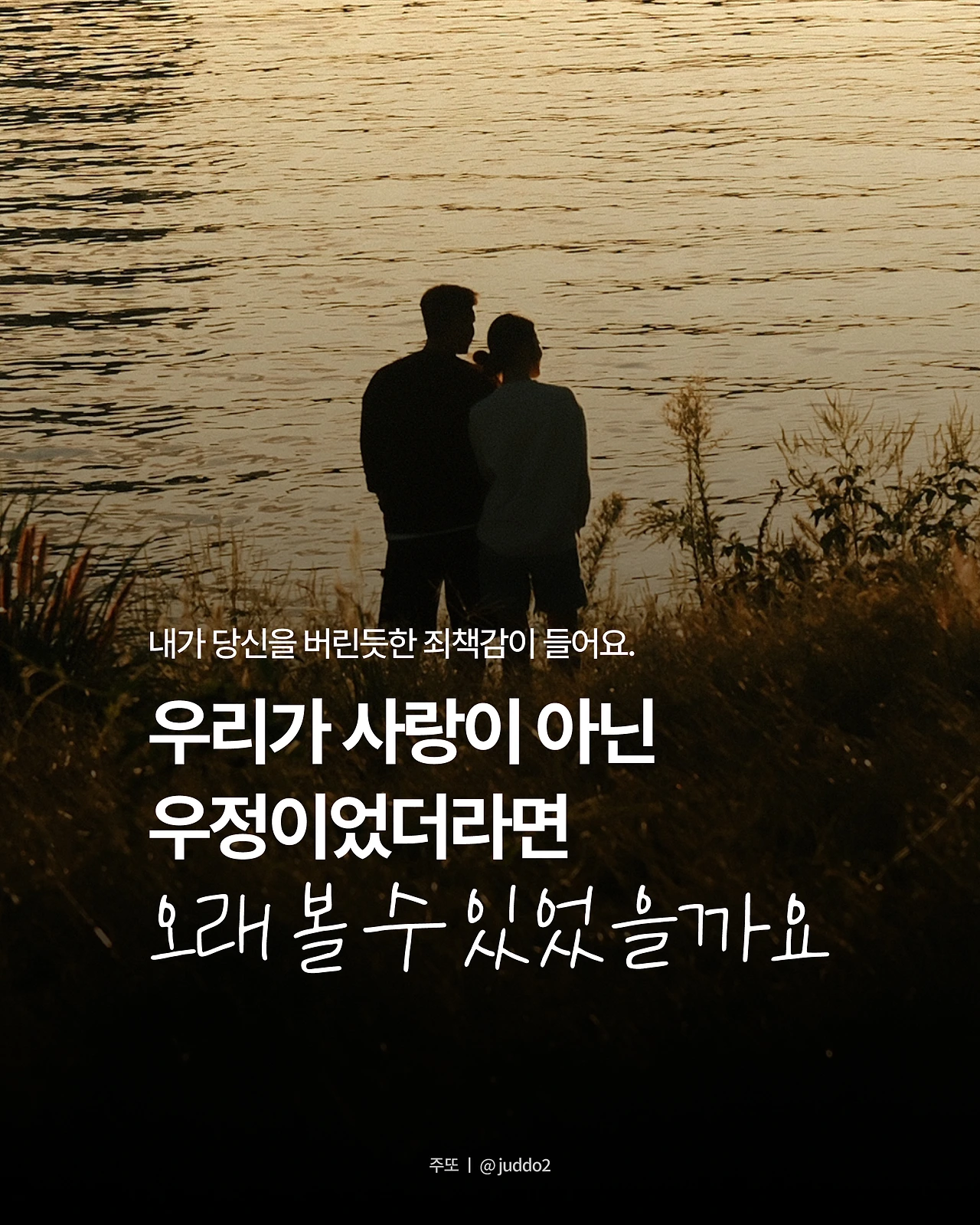 사랑이 아닌 우정이었어야 우리는 좀 더 얼굴을 오래 마주할 수 있었을지도 몰라요. 왜 하필 수많은 감정들 중 사랑을 느껴버려서, 하지 않아도 될 법한 숱한 고민을 달고 다니며 밤잠을 설쳤던 걸까요. 당신이 상처받지 않기를 원했습니다. 나를 포함한 그 누구에게도 말이에요. 그저 나라는 인물이 당신의 지난 상처를 씻기고 약을 발라주는 입장이 되기만을 바랐어요.
