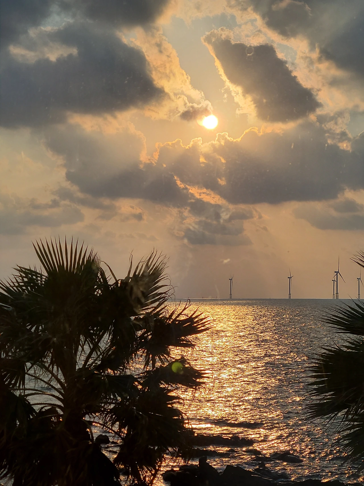 구름 사이로 해가 숨었다 나왔다, 금세 수평선 너머로 해가 넘어갔다.