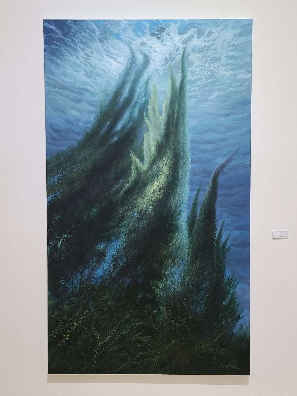 총 4개의 전시가 B1, 1F, 2F, 3F에서 각각 진행 중이었다. 3층 조광현 작가의 바다를 표현한 그림들이 멋지더라. 특히 요 그림은 바닷속에서 물 위를 바라보는듯한 느낌이 들어서 생명력을 표현한 것 같은 느낌이었달까...