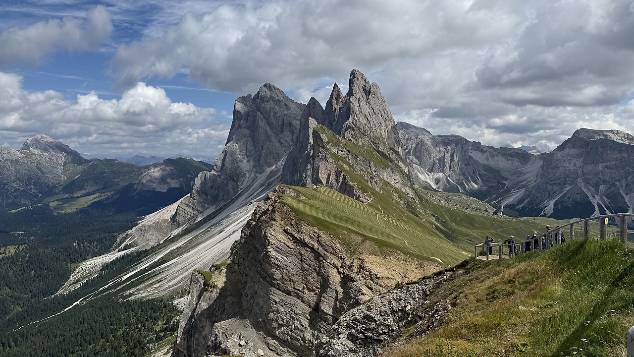 우리는 잠시 동안 이 풍경이 주는 감동을 만끽했다. 그리고 전망대로 발길을 옮겼다. 멀리서 보기엔 꽤 쉬워 보이는 언덕길이었는데, 걷다 보니 꽤나 힘이 들었다. 해발 2500m의 높은 고도의 영향이 아닐까 싶다. 알페디시우시에서는 동양인을 거의 보지 못했는데, 이곳에는 동양인이 꽤 눈에 띈다. 세체다가 돌로미티 서쪽 탑이라는 걸 증명이라도 하듯이.