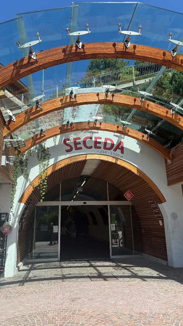 드디어 350번 버스가 도착했다. 우리는 이미 반쯤 지쳐 버스에 올랐다. 나는 버스에 오르자마자 잠이 들었다. 오늘 트레킹은 시작도 전인데, 혼이 반쯤 나간 것 같다. 30분 정도 달렸을까, 버스는 드디어 우리가 아침부터 그렇게 도착하고자 했던 오르티세이 광장에 다다랐다. 캠핑장을 나선 지 3시간 만이었다. 우리는 바쁘게 발길을 옮겨 세체다 케이블카로 향했다. 세체다 케이블카는 버스 정류장이 있는 산 안토니오 광장에서 7분 정도 떨어진 곳에 위치해 있는데, 레지아 길(Strada Rezia)을 따라 올라가다 보면 에스컬레이터가 나온다. 그 에스컬레이터를 타고 오르면 바로 세체다행 케이블카를 탈 수 있는 정거장에 도착한다.