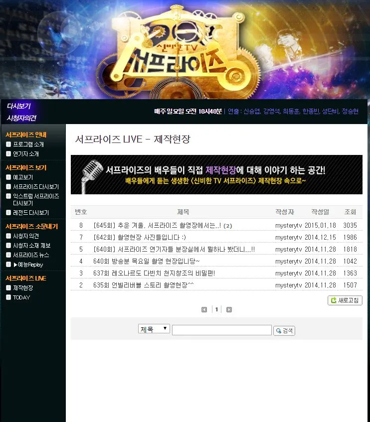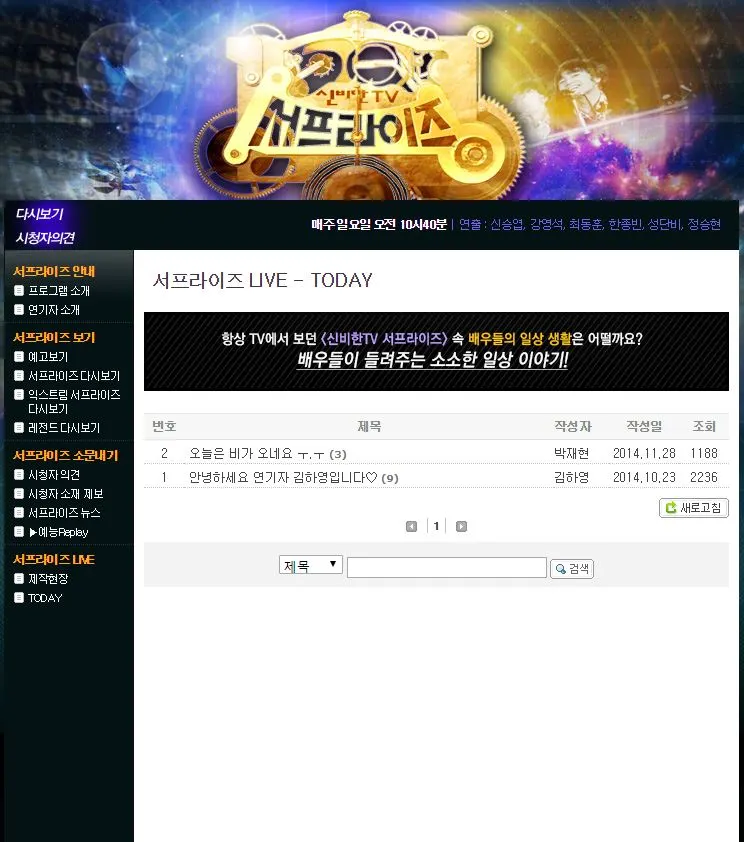 <서프라이즈> 공식 홈페이지를 들어가 가장 놀랐던 점은 '시청자 의견', '시청자 소재 제보' 탭을 통해 게시물이 활발히 올라오고 있다는 점이었다. <서프라이즈>에 대한 시청자의 자발적인 참여도가 높다는 점은 주목할 만하다. 그렇다면 공식 홈페이지의 ‘서프라이즈 LIVE’ 탭을 SNS로 옮기는 건 어떨까?