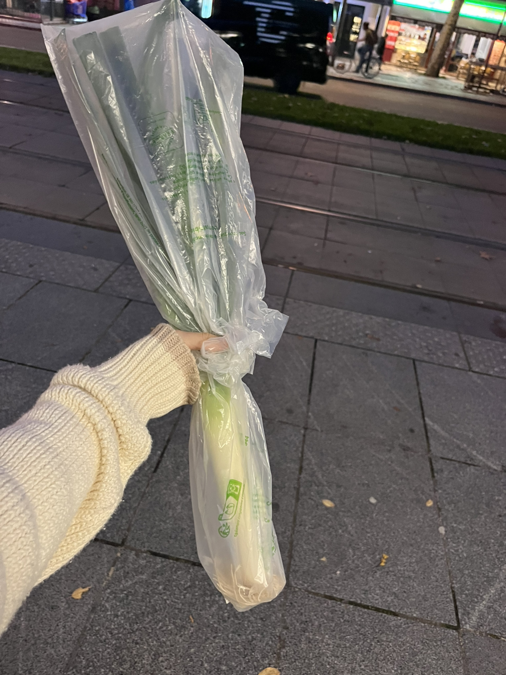 아주 큰 대파 하나를 손에 쥐고 집에 갔다.