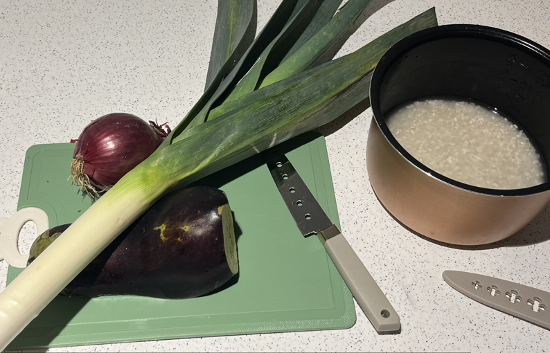 재료는 대파, 가지, 올리브오일, 간장, 쌀만 있으면 돼서 정말 간단하다.