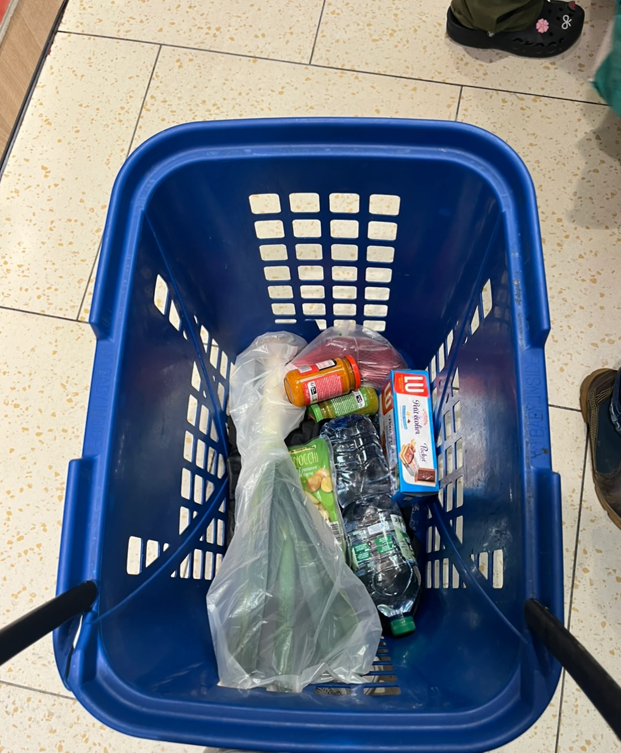 파리에서 유명하다는 LU 과자, 파스타 소스, 대파, 뇨끼, 양파, 물을 샀다. 이렇게 샀더니 11유로가 나왔다.