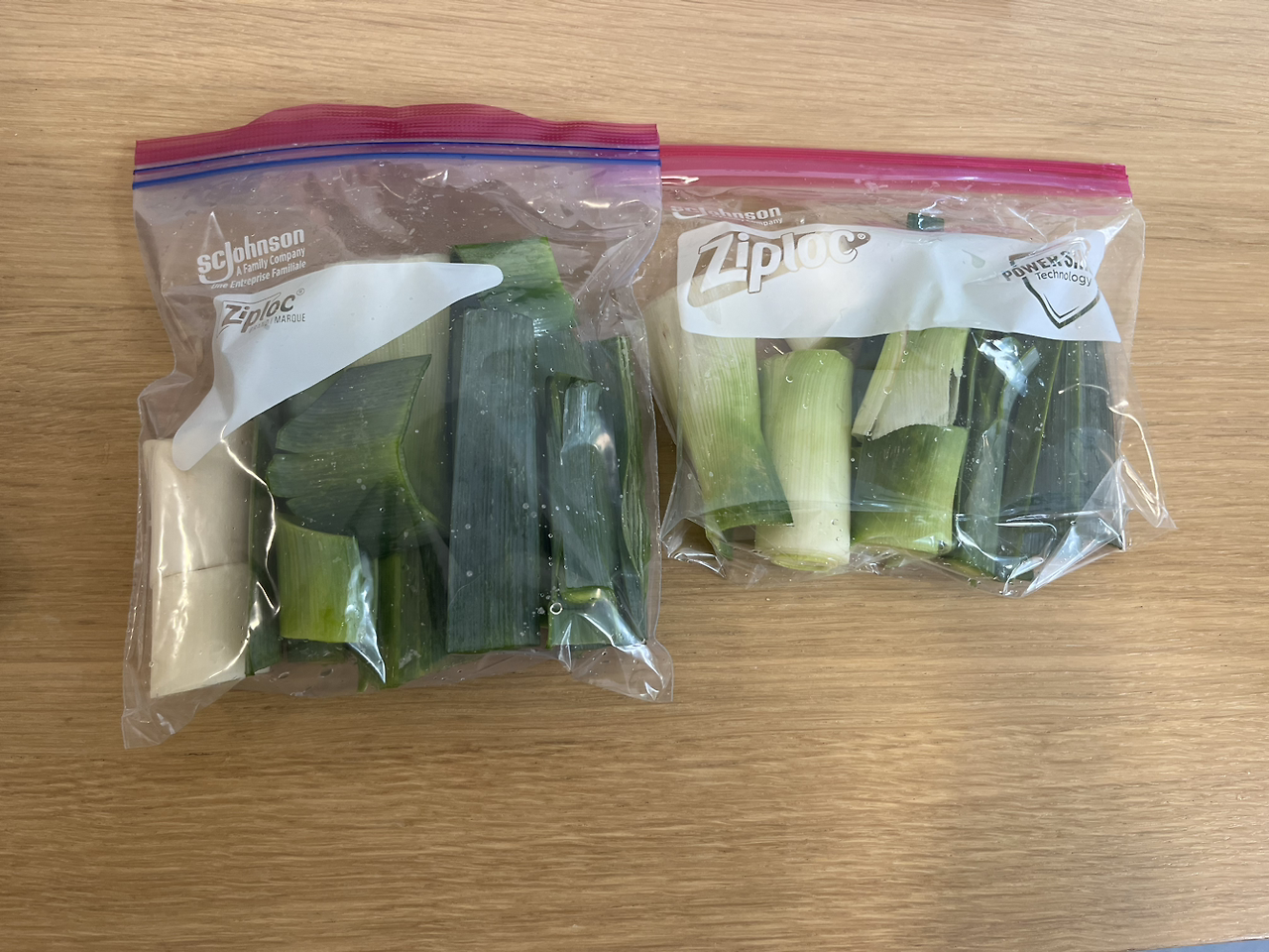 파스타는 COMBINO의 Linguine(링귀니)면을 쓰고 있다. 면이 납작한 편이고 얇은 일반 파스타면보다 훨씬 맛있다. 면은 미리 삶아서 냉장/냉동 가능한 지퍼백에 넣어둔다. 소금을 살짝 넣어서 8분 삶아준 후 올리브 오일을 조금 넣고 비벼 보관하면 된다. 등교하기 전에 시간이 남아서 대파도 소분해 두었다. 키친타올로 습기를 제거하면 좋은데 없어서 그냥 물기를 탈탈 털어 넣었다. 파 양이 많아서 2/3 정도를 냉동했다.