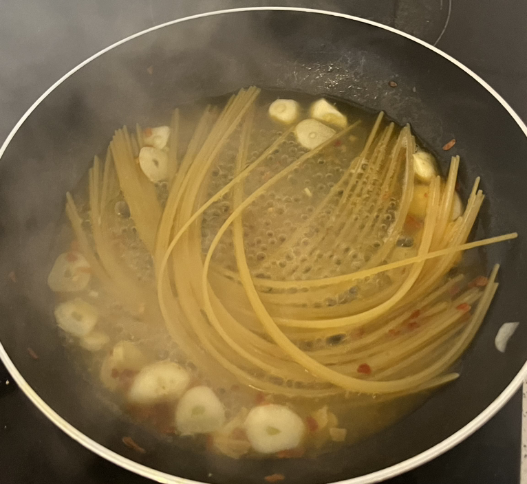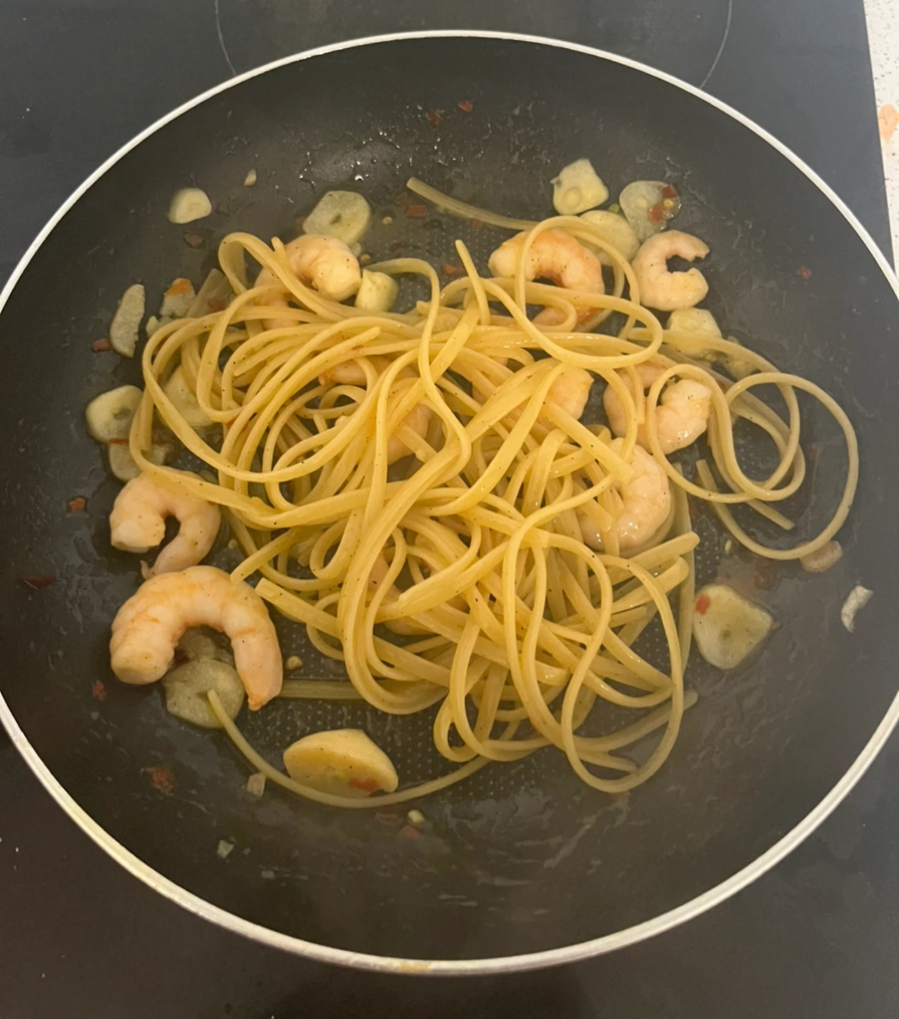 이 날은 학교 가기 전 아침 겸 점심으로 새우 알리오올리오 파스타를 해 먹었다.