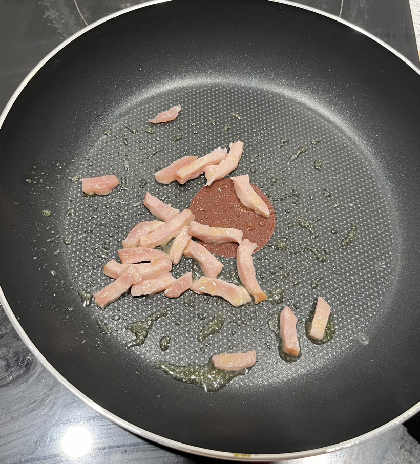 올리브오일을 두르고 베이컨을 볶는다.