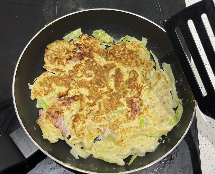 든든하고 맛있는 양배추전이 완성됐다. 스리라차 소스나 케찹 뿌려 먹으면 잘 어울린다.