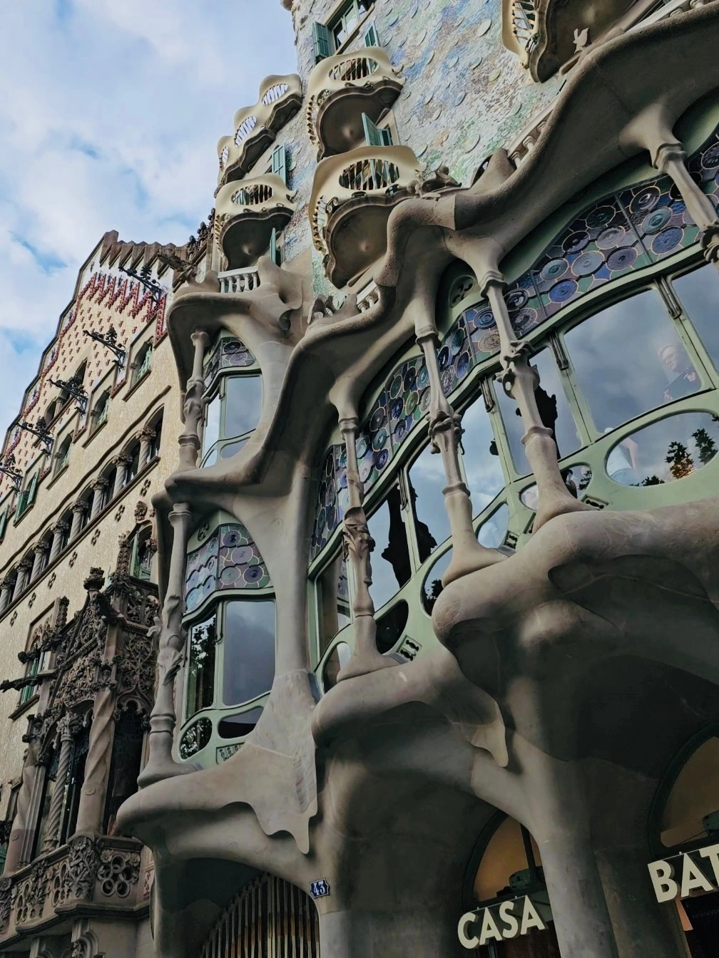 아침 일찍 사람이 없으니 까사밀라 주택에서의 선선했던 아침 공기와 옥상 굴뚝이 기억난다. 까사밀라 가까이 있는 다음 가우디의 유산인 까사바트요로 향했다. 까사바트요가 외관상 더 화려했다.